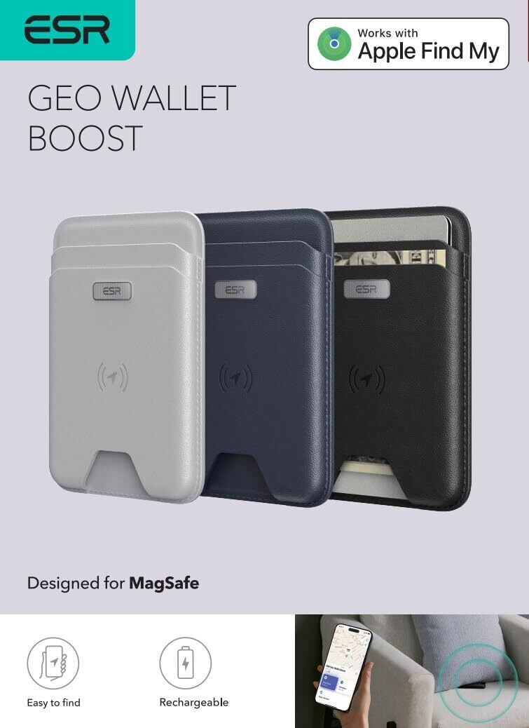 [ESR] MagSafeカードケース「探す」Find My 機能付き 5枚カードホルダー iPhone用強力マグネットウォレット ウォレットトラッカー iPhone 16/15/14/13/12シリーズ用 13/12 mini非対応 カーボンファイバーブラック