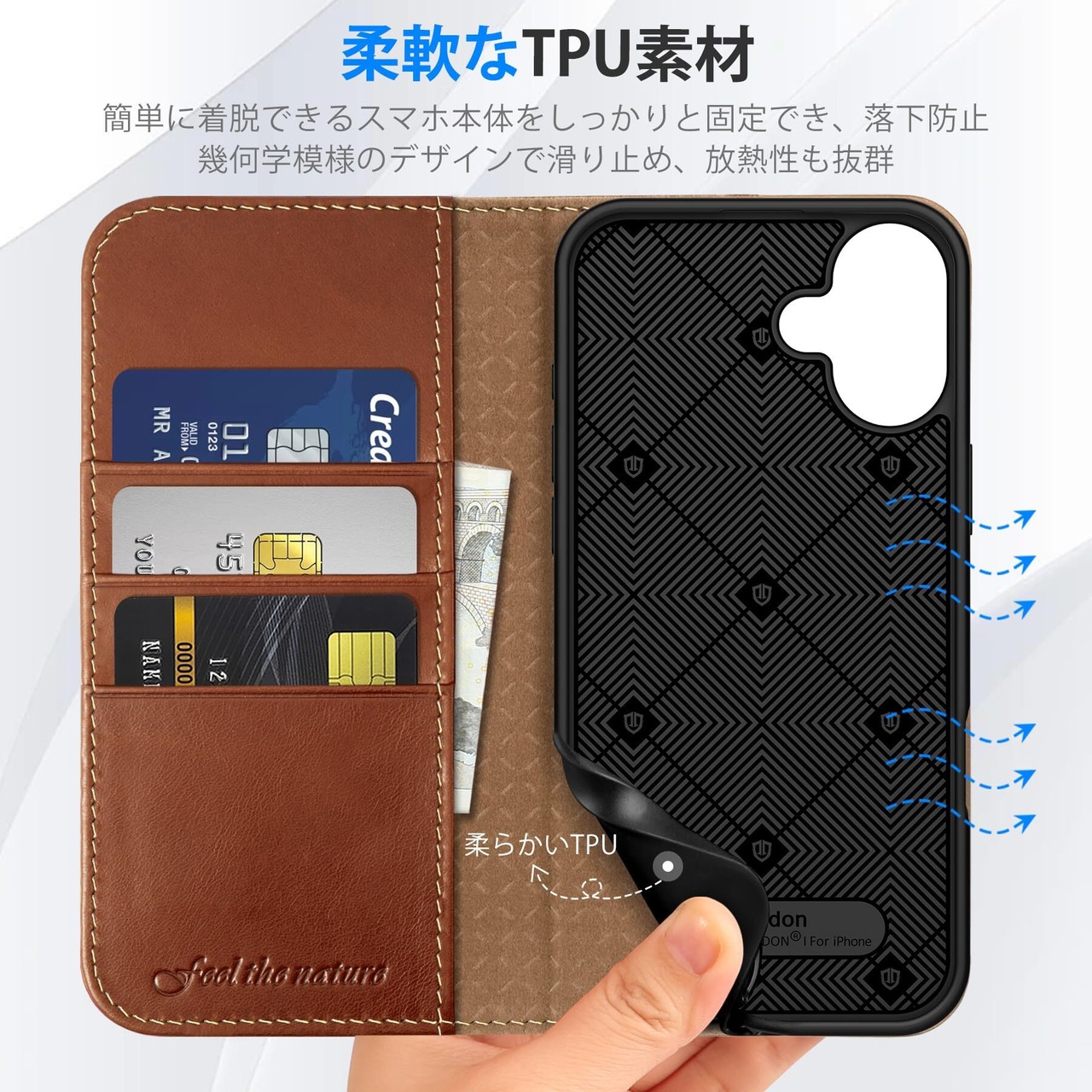 SHIELDON iPhone 16 Plus 対応ケース 手帳型 本革 あいふぉん 16 プラス スマホカバー 衝撃吸収 TPU素材 カード収納 横置きスタンド機能 マグネット内蔵 [RFIDブロッキング] 全面保護 アイホン 16Plus 対応 スマホケース 2024年発売 6.7インチ対応 5G レトロブラウン