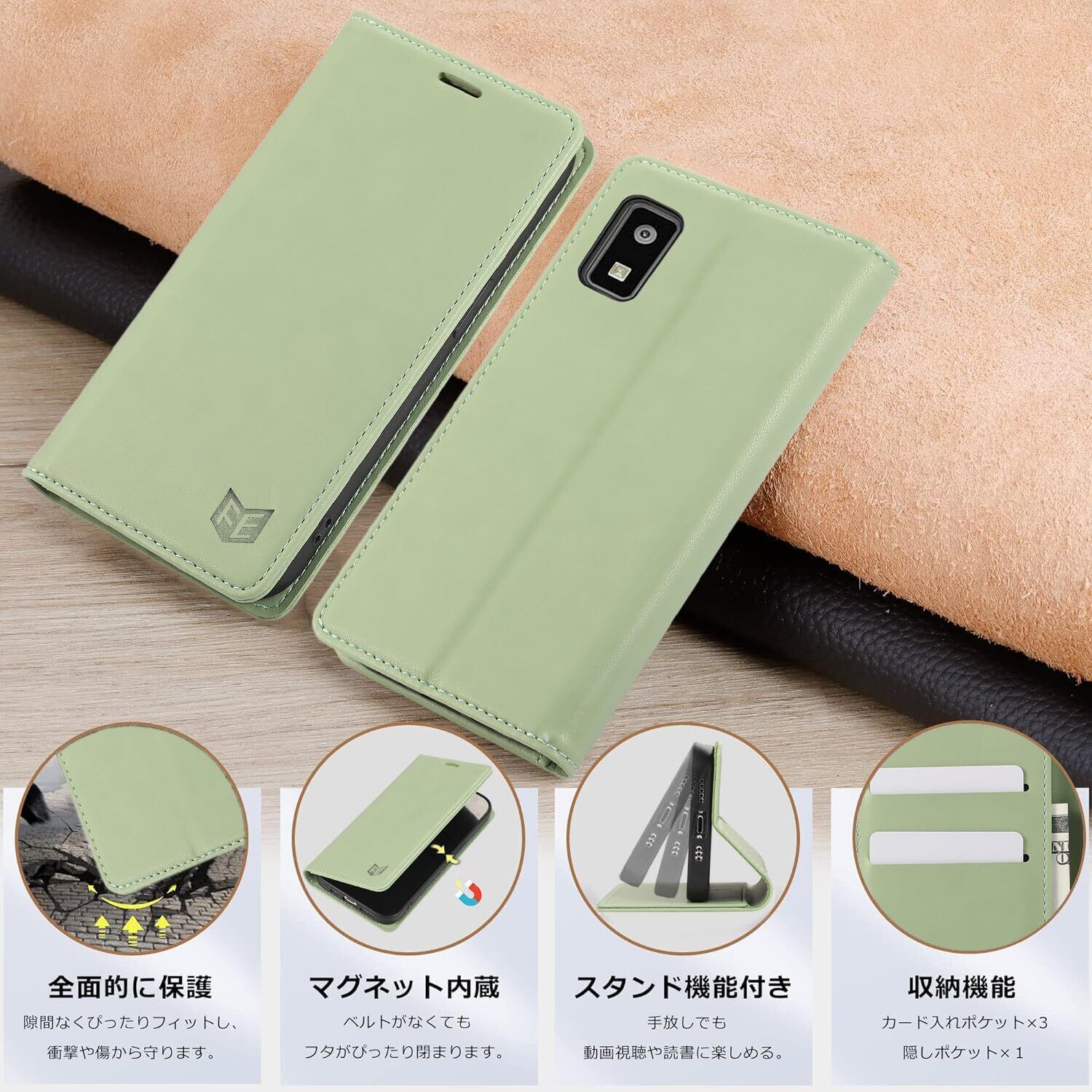 FeeY AQUOS Wish SHG06 手帳型ケース aquos Wish2 SHG08 ケース手帳型 aquos wish shg06 A104SH SH-M20 手帳 aquos wish2 shg08 A204SH SH-51C 財布型 スマホケース カード収納 横置きスタンド機能 TPU素材 衝撃吸収 全面保護 ライトグリーン