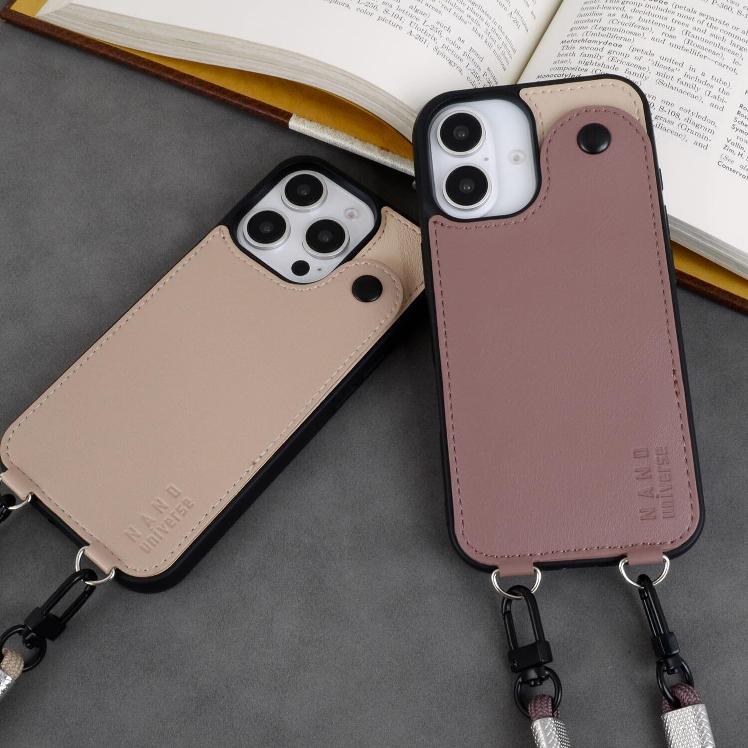 【 nano・universe 正規品 】 iPhone 16 ケース 「 ロングストラップ ポケット付き背面ケース / バイカラー 」ナノユニバース 小物収納 カード入れ付き 6.1インチ アイフォン16 iPhone16 用 ブランド スマホケース カバー (ココア)