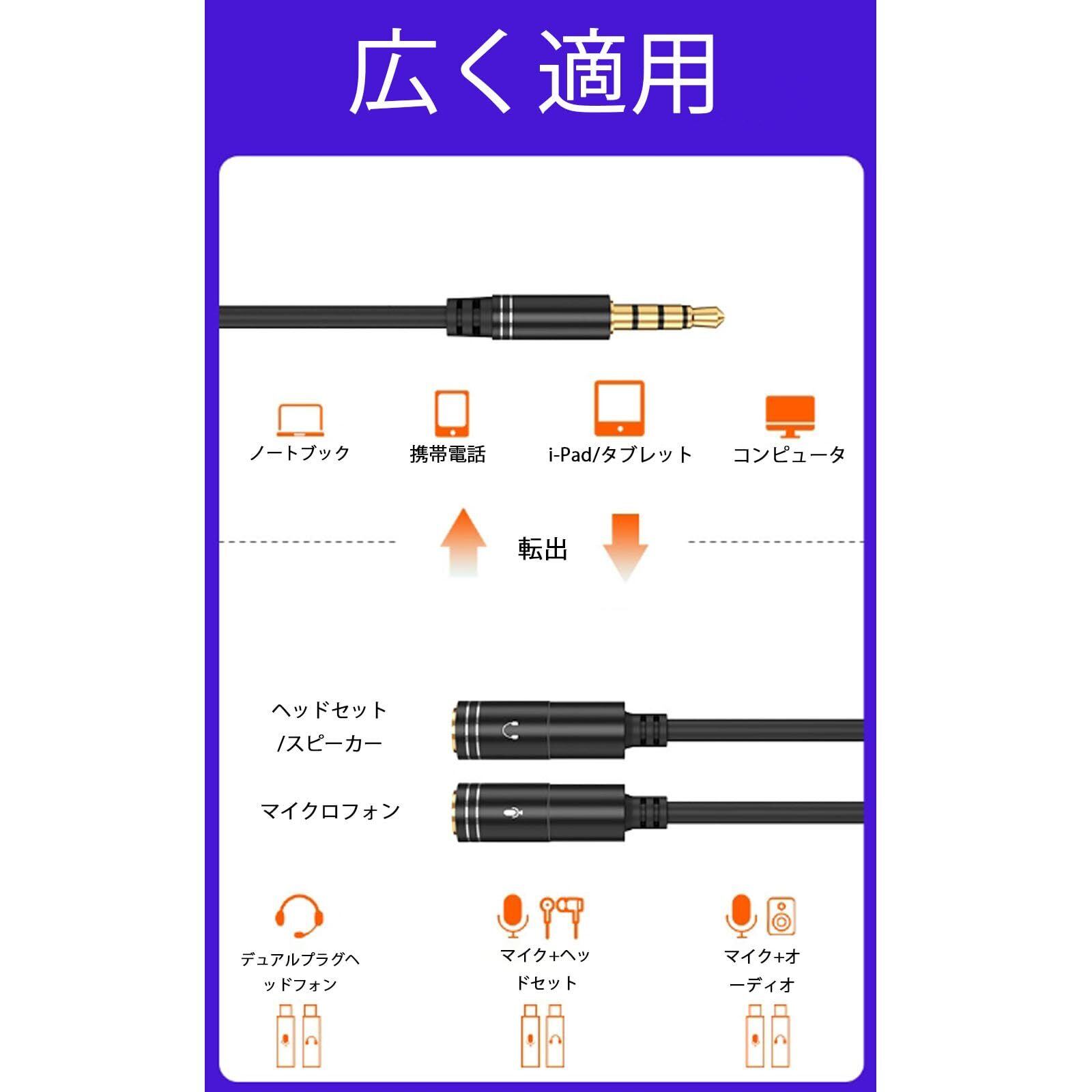 3.5MMオーディオケーブル 変換ケーブル 4極/3.5mm Y分配ケーブル 3.5mm オス to 2*メス(ヘッドホン+マイク) イヤホン分岐コード Hi-Fi音質 耐久性 金メッキプラグ タブレット/MP3/PS4/Xbox one/携帯電話等に対応 (ブラック)