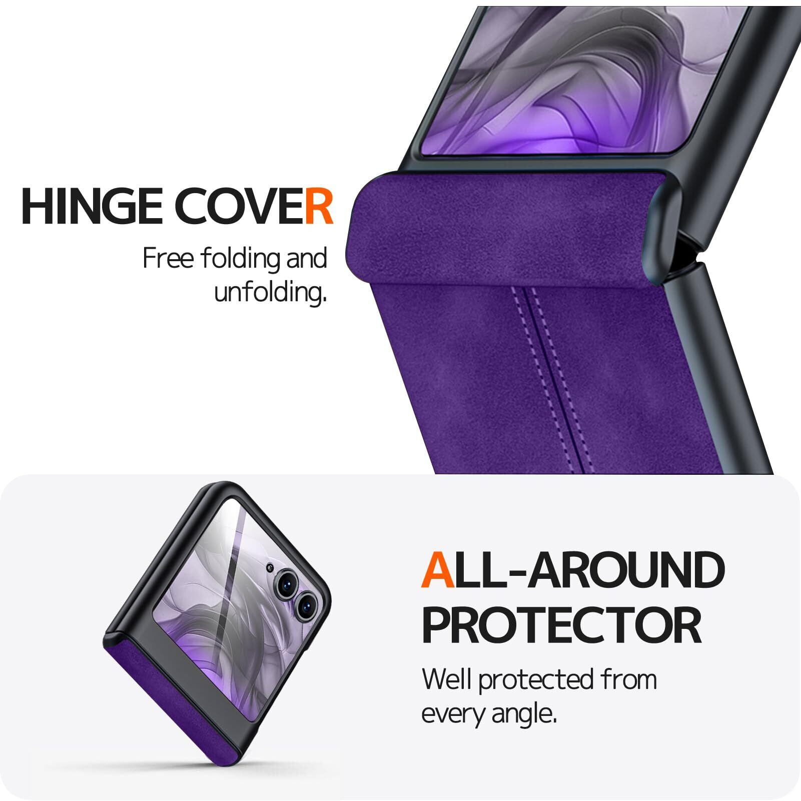 NINKI適応Moto Razr 50 ケース 液晶フィルム付き 手触り良き レザー製 PU革 ビジネス Qi充電対応 バンパー ワイヤレス充電 擦り傷防止 落下防止 指紋防止 レンズ保護 人気 モトローラ レーザー50 ケース (パープル)