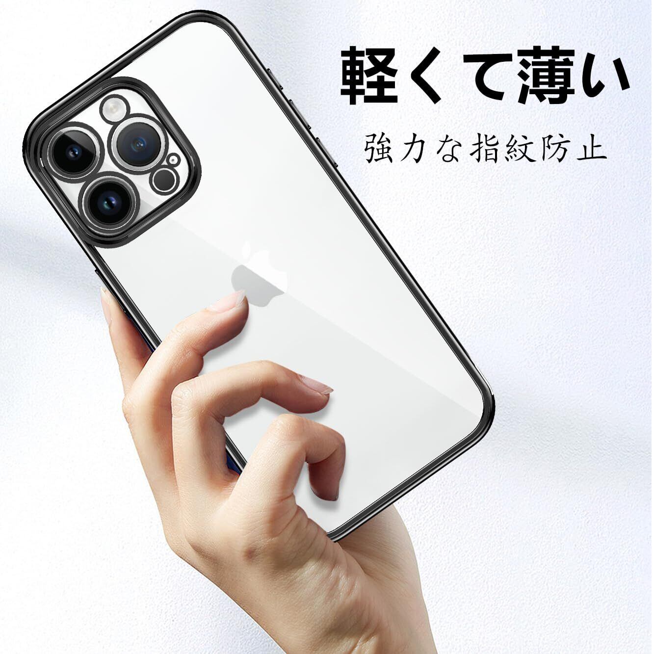 iPhone 16 Pro Max 用 ケース クリア アイフォン16ProMax カバー スマホケース 耐衝撃 可愛い 透明 アイホン ソフト TPU スマホカバー ストラップホール付き(ブラック)