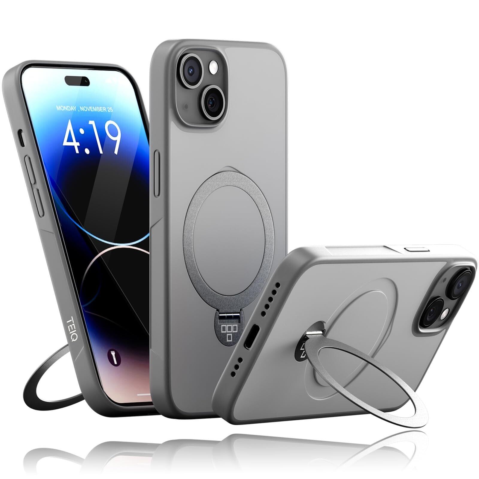 TEIQ iPhone12Pro ケース 360°回転リング スタンド MagSafe対応 ワイヤレス充電対応 カバー アイフォン 12 プロ 用 (グレー)
