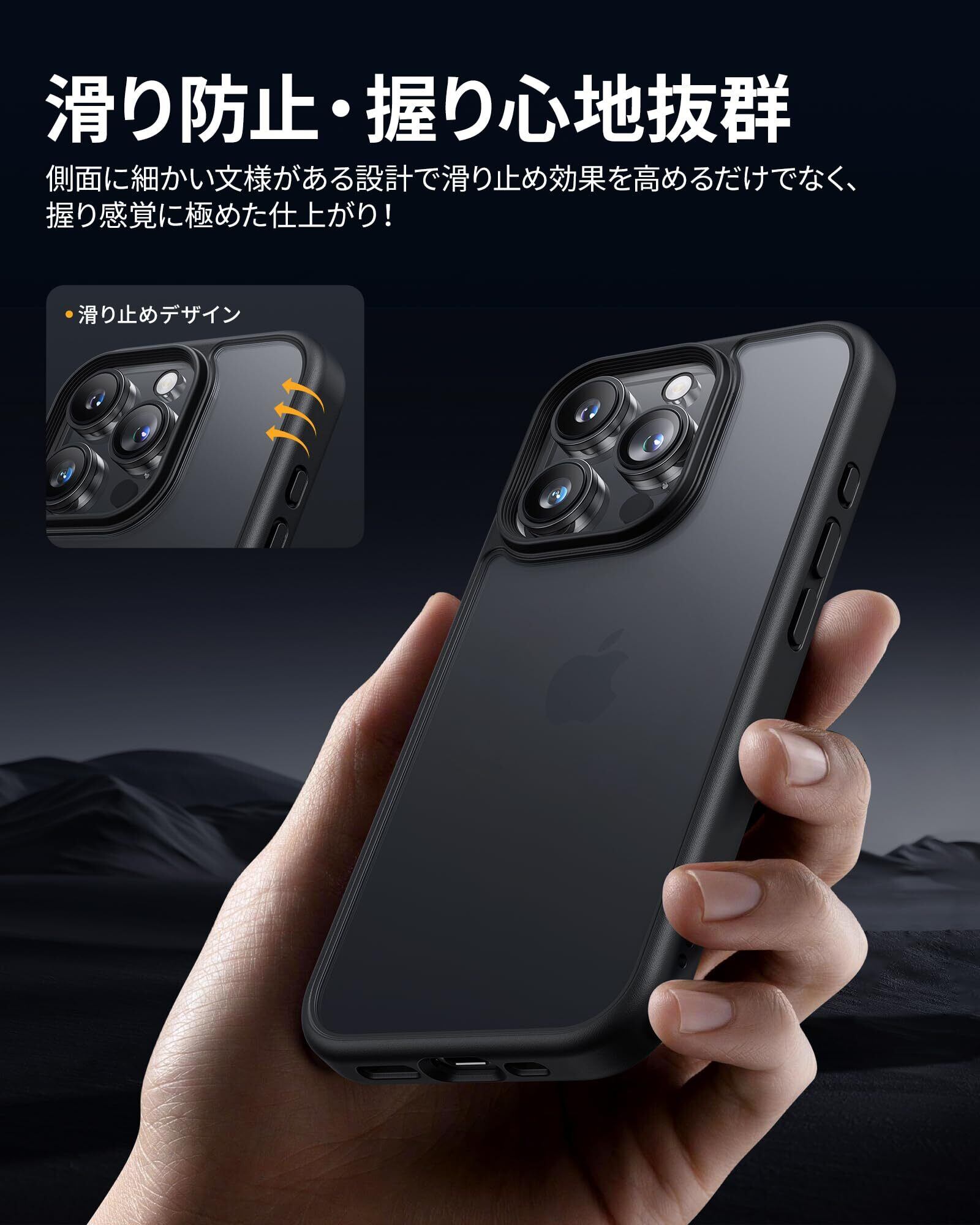NIMASO iPhone16ProMax用 ケース カバー 滑り止め マット仕上げ 全面保護 いPhone16ProMax対応 耐衝撃 米軍MIL規格取得 ワイヤレス充電 ストラップホール付き アイフォン16プロマックス対応 (6.9インチ) スマホケース ブラック (黒羽シリーズ)NSC24I1521