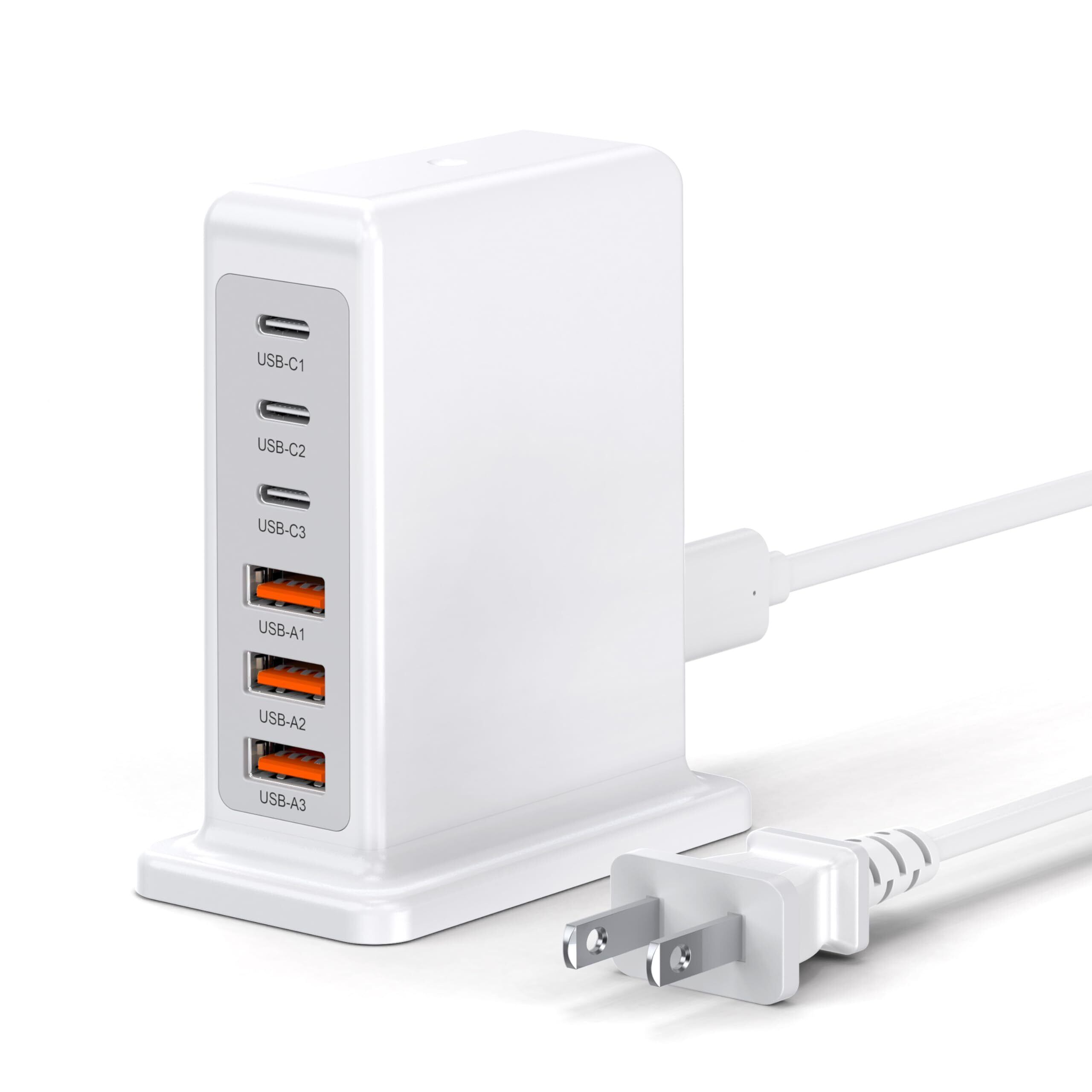 充電器 100W 6 ポート 急速充電器 USB Type-C 充電器 3 PD USB-C QC USB A 充電器 iPhone16 15 14 13 12 11 Pro Max XS、iPad、タブレットに対応 ホワイト