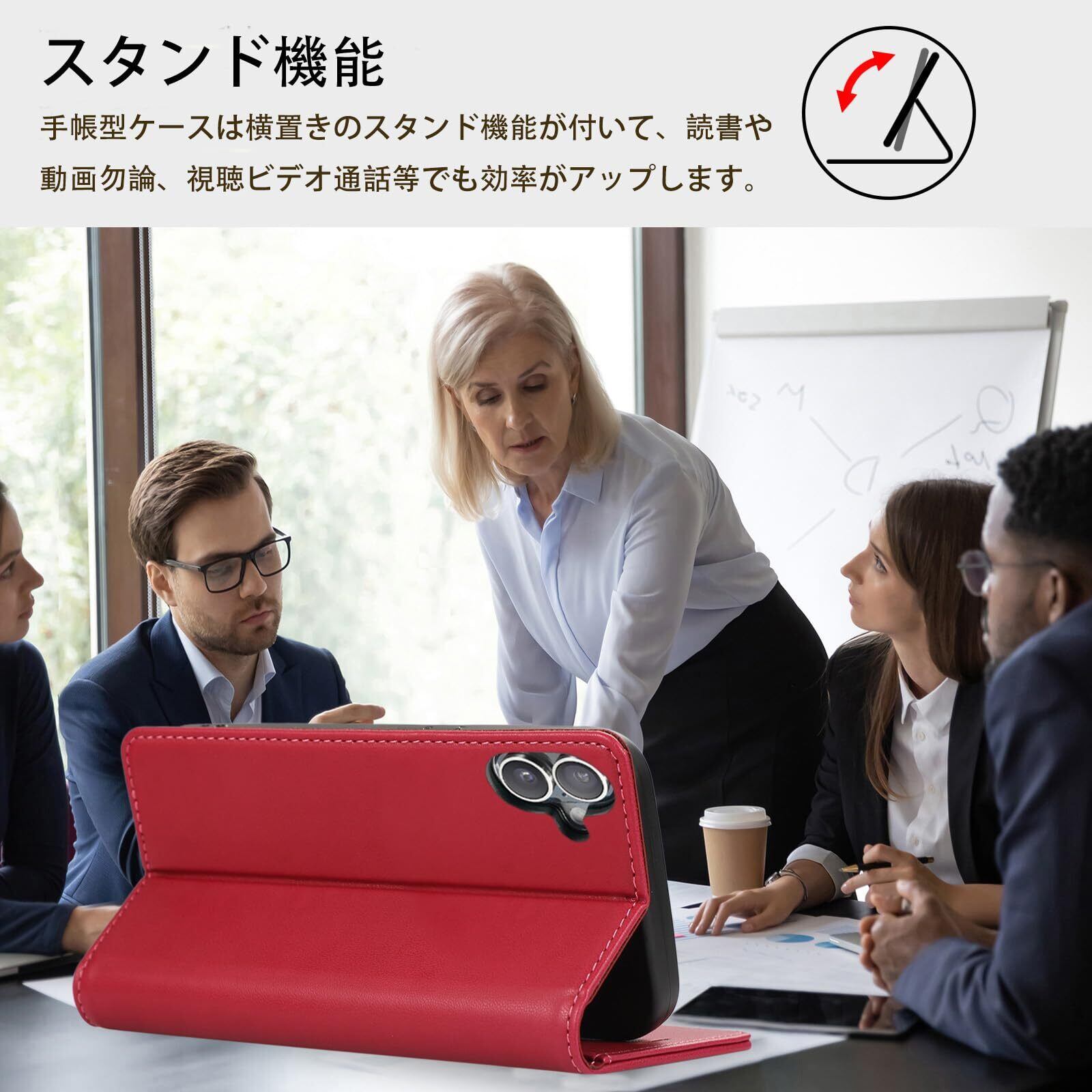 FeeY iphone16ケース 手帳型 Iphone16手帳 ケース 耐衝撃TPU素材カード収納 マグネット内蔵スタンド機能付き アイフォン16携帯カバー全面保護 スマホケース 6.1インチ対応,ローズレッド
