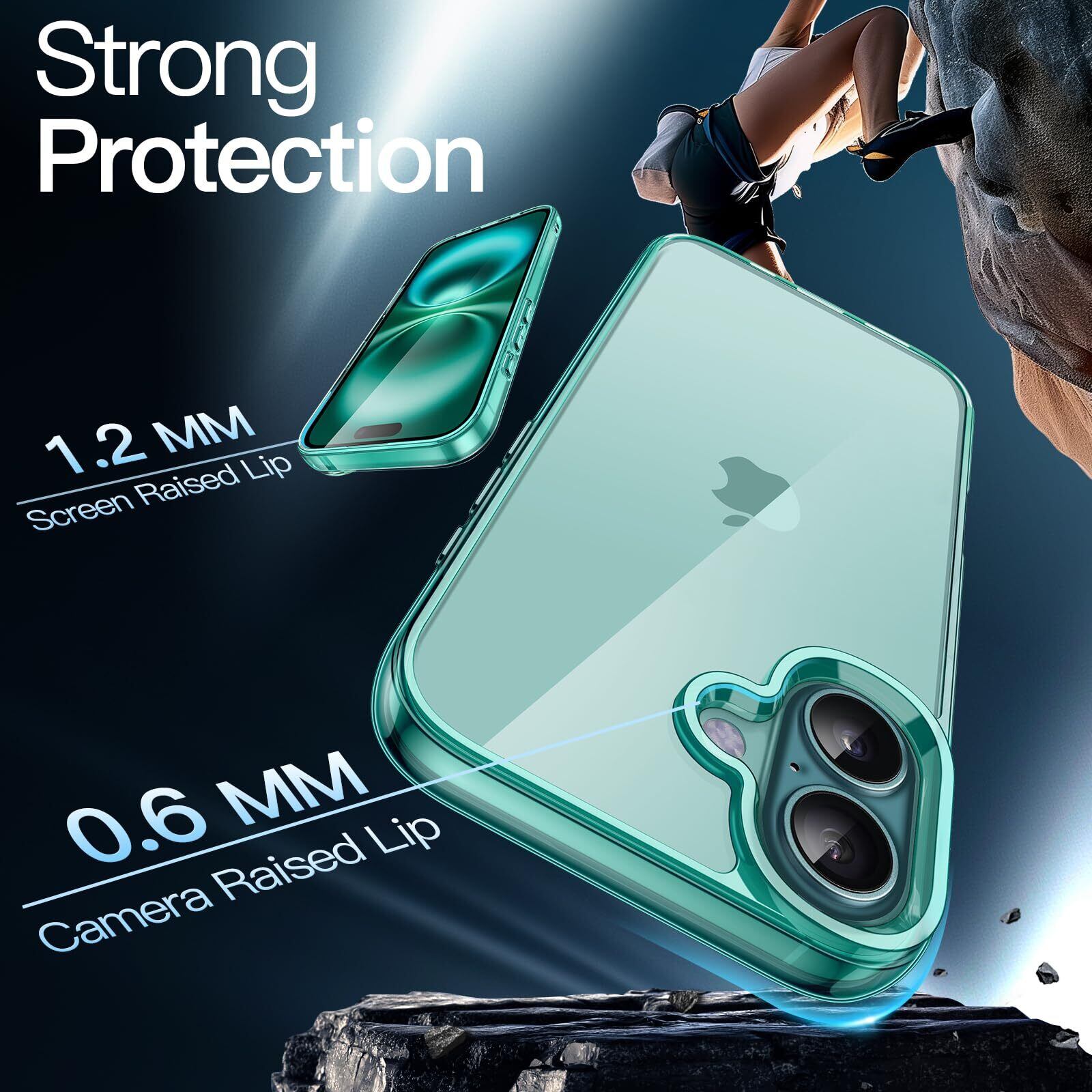 JETech iPhone 16 6.1インチ用 ケース 黄ばみなし 衝撃吸収 バンパーカバー 傷つけ防止 クリアバック (ティールブルー)