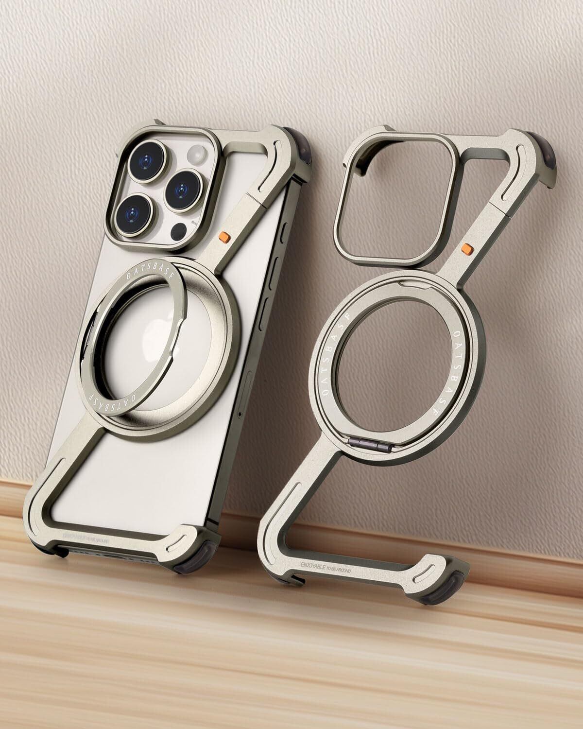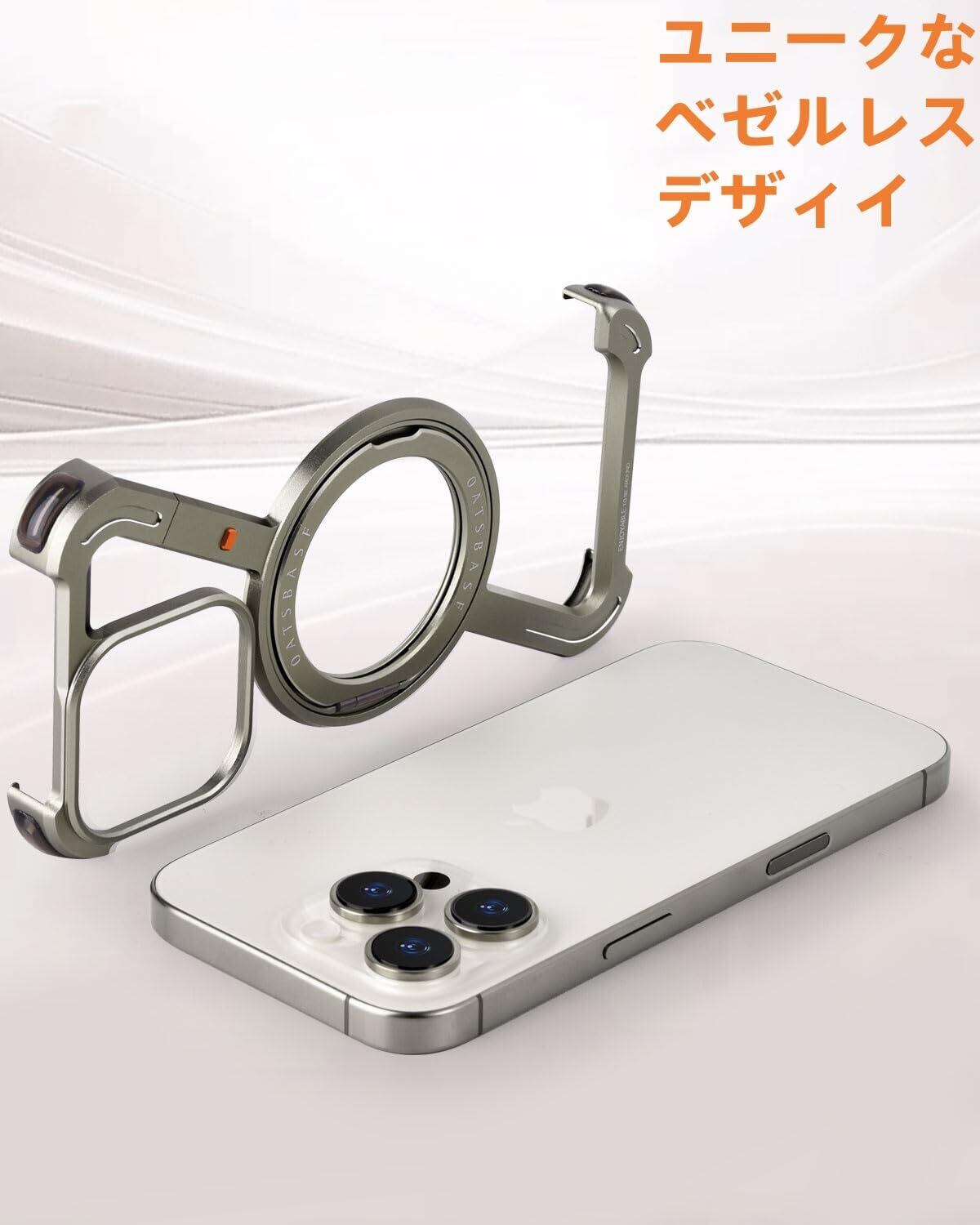 iphone 16 pro max ケース と互換性のあるミニマリスト、スマホケース 、360°回転キックスタンドアルミ金属フレームレスデザインバンパーケース 耐衝撃 横縦両立 MagSafe対応 ワイヤレス充電対応 保護ショックグレードシェル 天然チタン