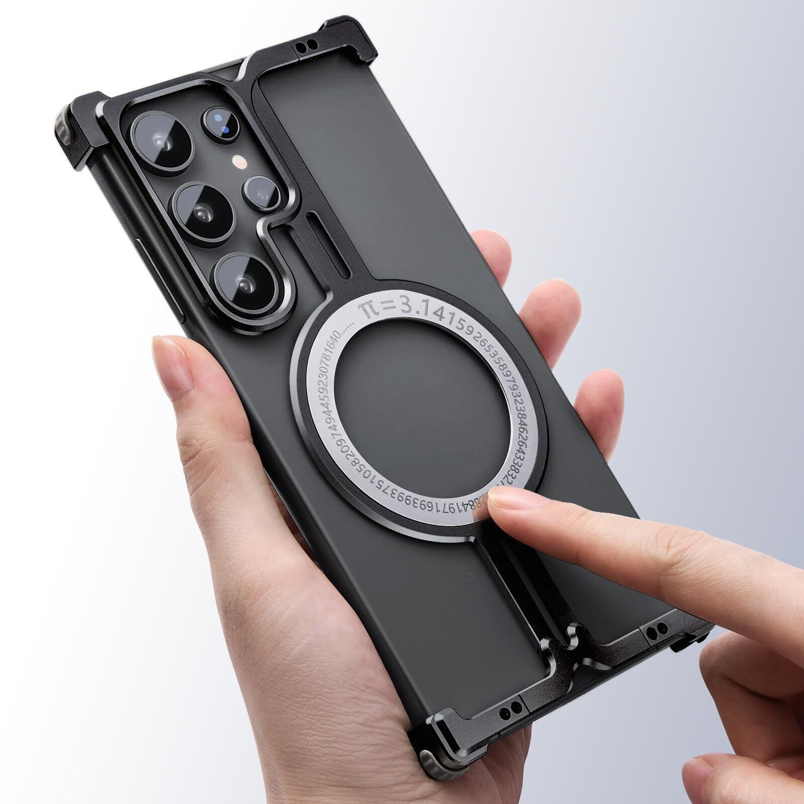 PANPHENバンパー携帯保護カバーサムスンGalaxy S 24 Ultraと互換性がある,ステルス磁性O型リングホルダ付き保護シェル,Galaxy S24Ultraシンプルスタイル携帯保護ケース,フレームレス保護シェル,ブラック