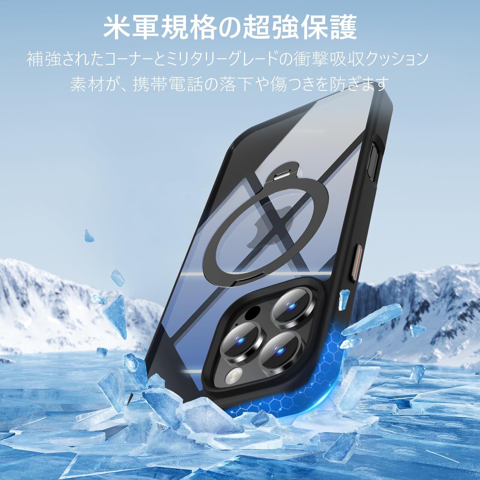 【対応機種】iPhone 16Pro 専用6.3インチ対応ケースです。MagSafe対応、定点360度回転、リングスタンド付き、ストラップホール付き、耐衝撃性、黄ばみ防止のスマホケース、便利で美しく、誰でもどんなシーンにも適しています。