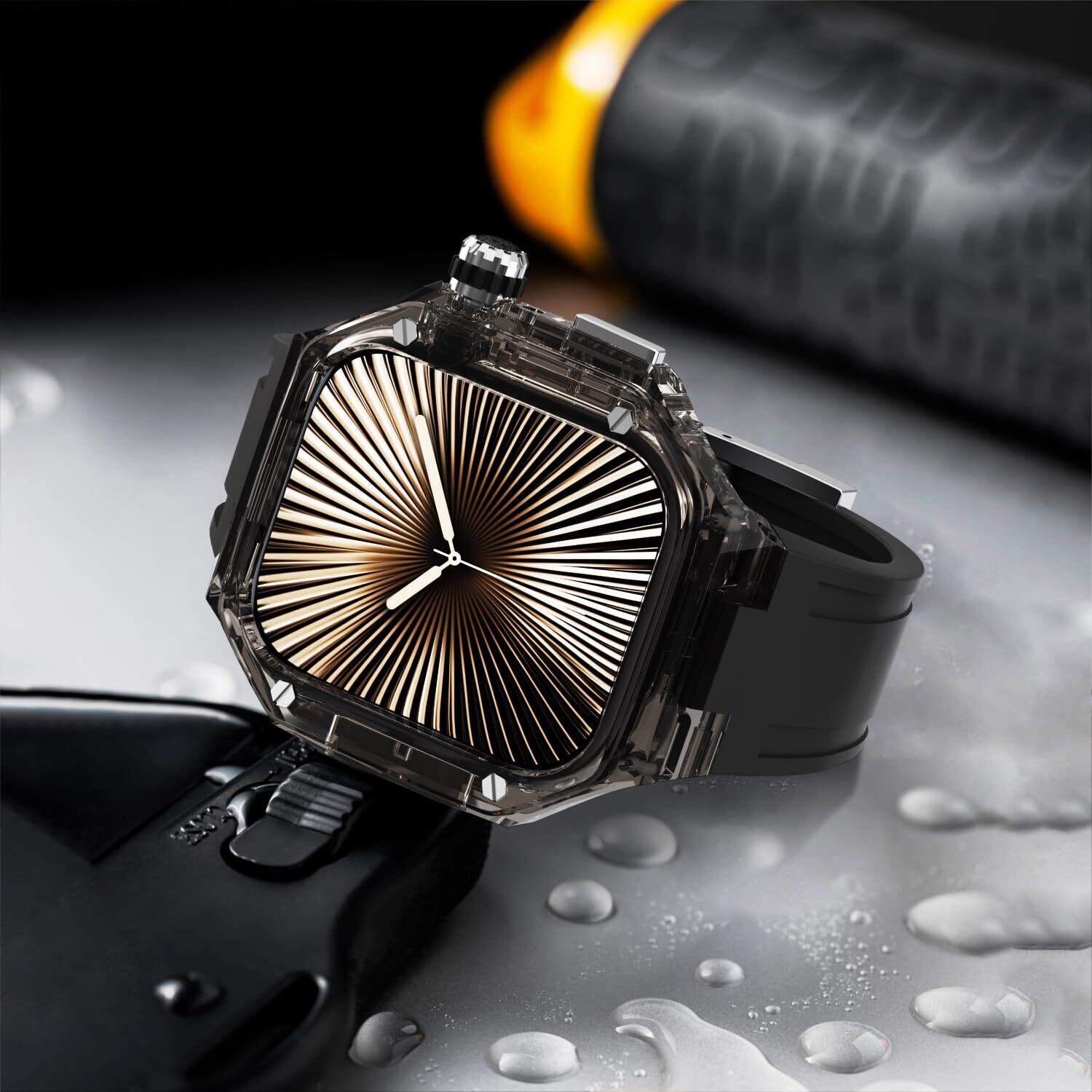 高級感のあるクリアなアップルウォッチケースは、ポリカーボネート製です。重量は約15gです。