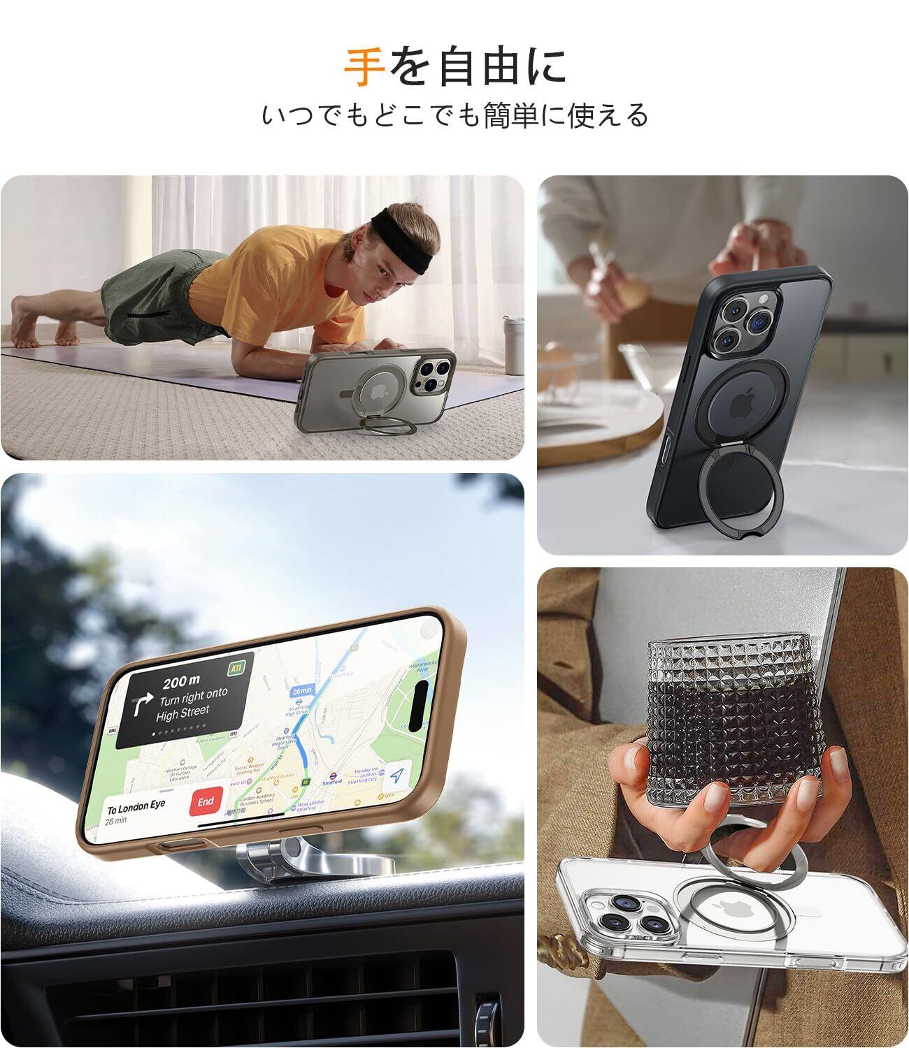 【360°回転可能なリングスタンド】: TickStandシリーズ スタンド ケース - 指先の解放神器。リングスタンドは軽量で高耐久性の航空アルミニウム合金製で、スリムな埋め込みデザインです。目に見えないスタンドを開くと、リングスタンドとして 360 度回転でき、握りやすく持ち運びが簡単です。柔軟なスタンドとして、水平方向と垂直方向に任意の角度に調整でき、手を自由にします。安定した完璧な視聴体験をもたらします。