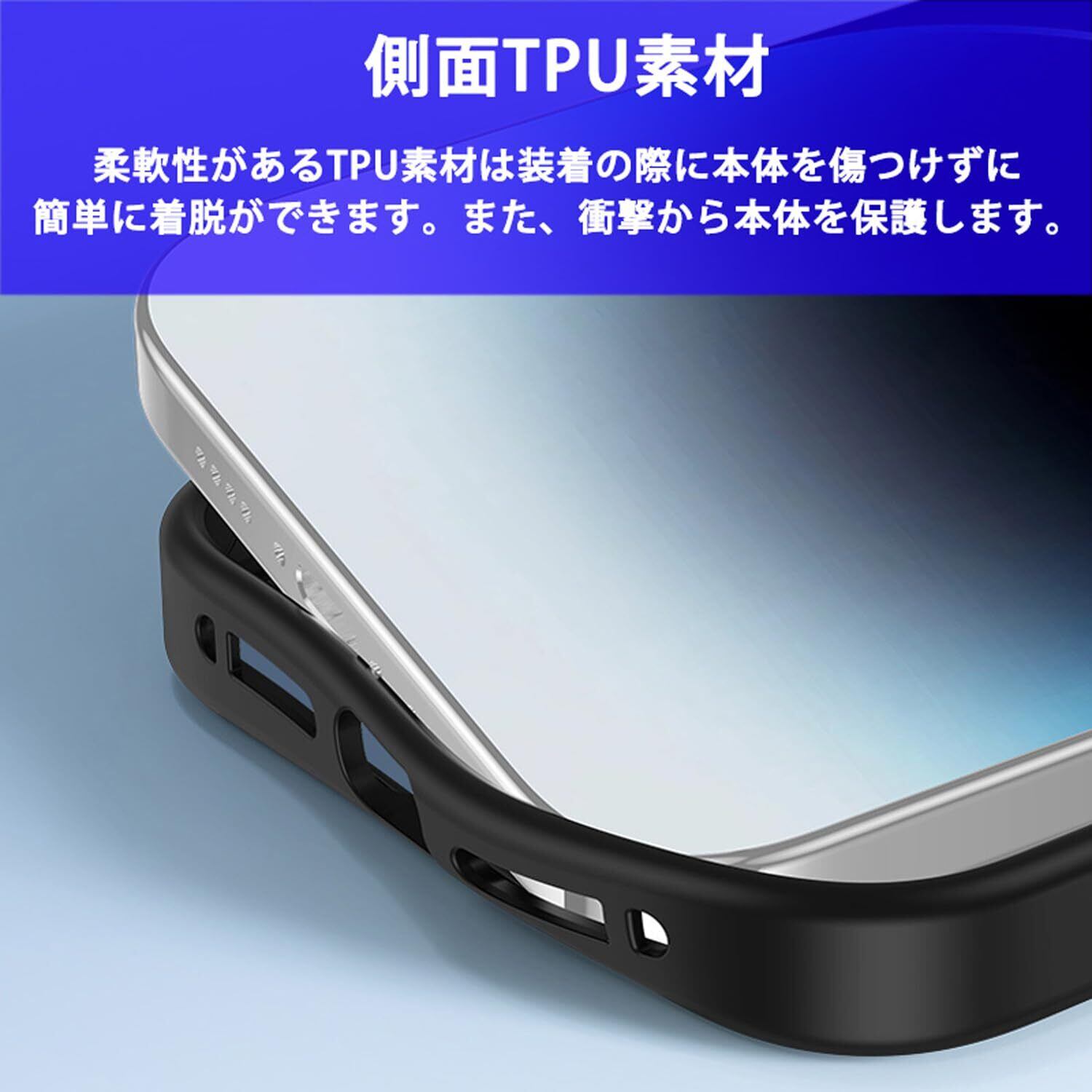【側面TPUバンパー】 柔軟性があるTPUバンパーは装着時に端末本体を傷つけることなく簡単に着脱が可能です。