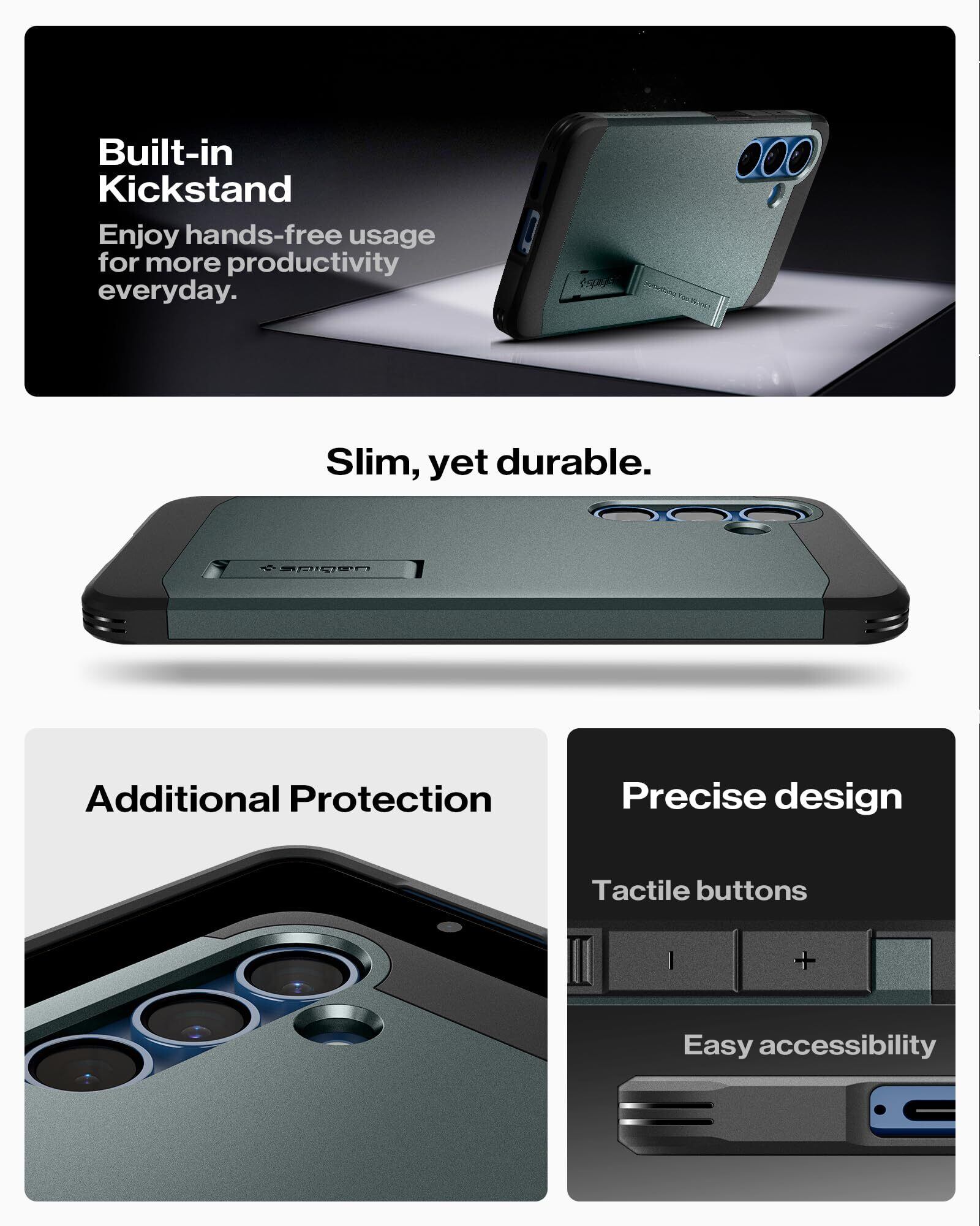 Spigen Galaxy S25 ケース Magfit対応 マグネット搭載 スタンド付き マット 耐衝撃 米軍MIL規格 タフ・アーマー(AI)・マグフィット ACS09010 (アビス・グリーン)