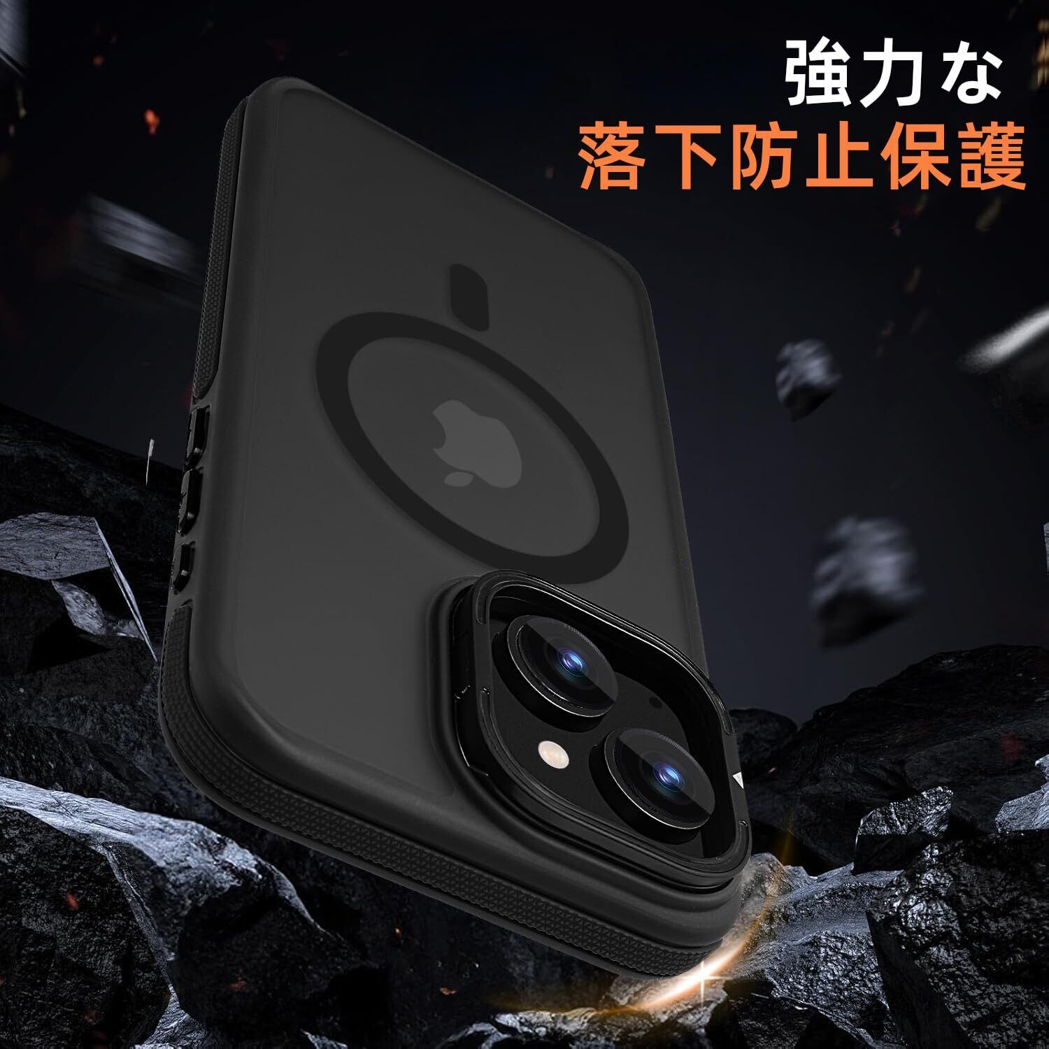 【レンズスタンド内蔵・Magsafe対応】Cakorin iPhone14強力磁気ケース[10インチ落下ミリタリー保護]防振超薄14用ケース半透明マグネット耐衝撃マット感ワイヤレス充電対応,ブラック スタンド