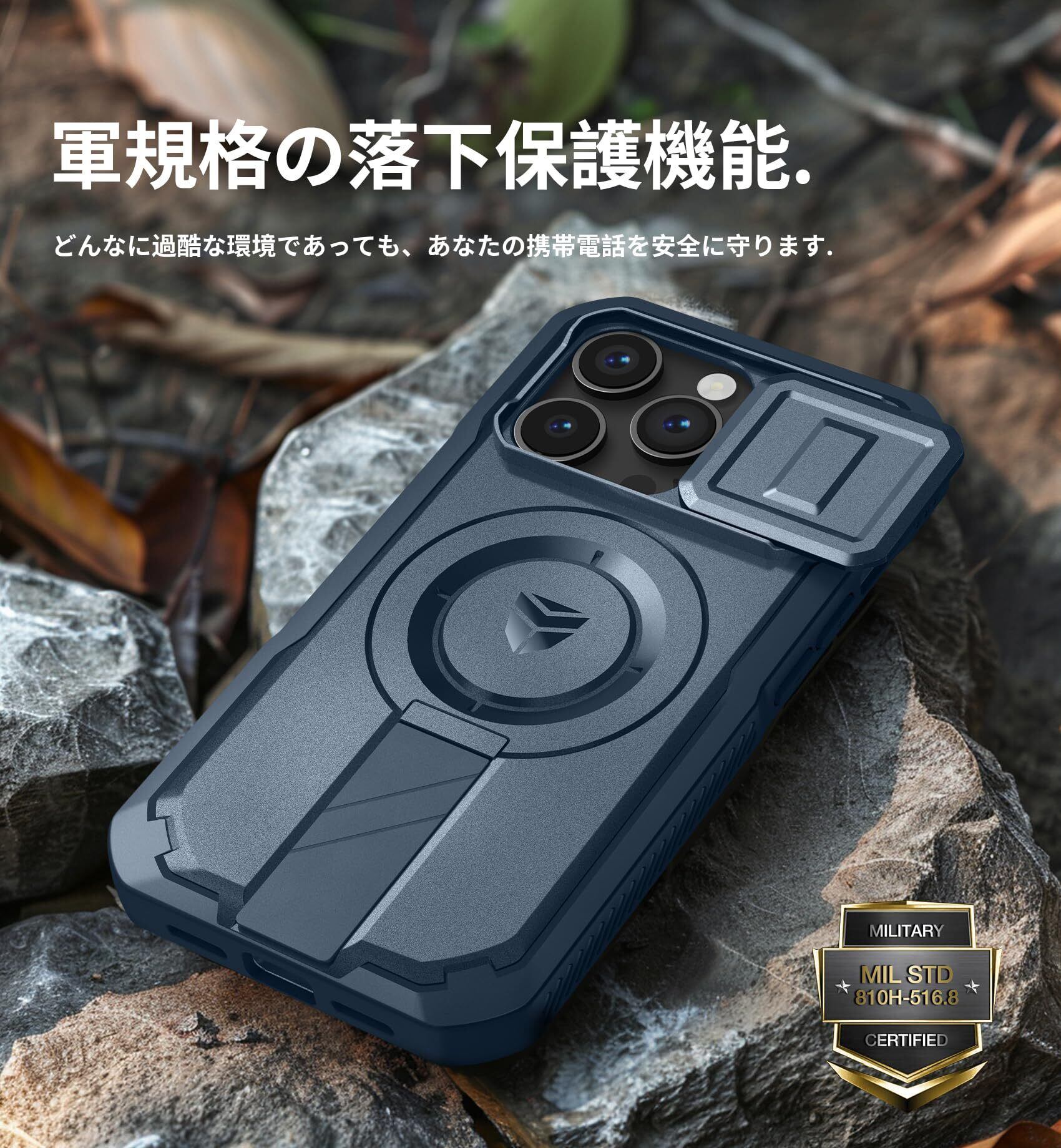 【強力マグネット機能】最大1,400gの磁力を実現する「マイティーマグネット」搭載。ワイヤレス充電器やカーマウントなど、あらゆる磁気アクセサリーに確実に吸着。どんな状況でもスマートフォンを安全に固定します。