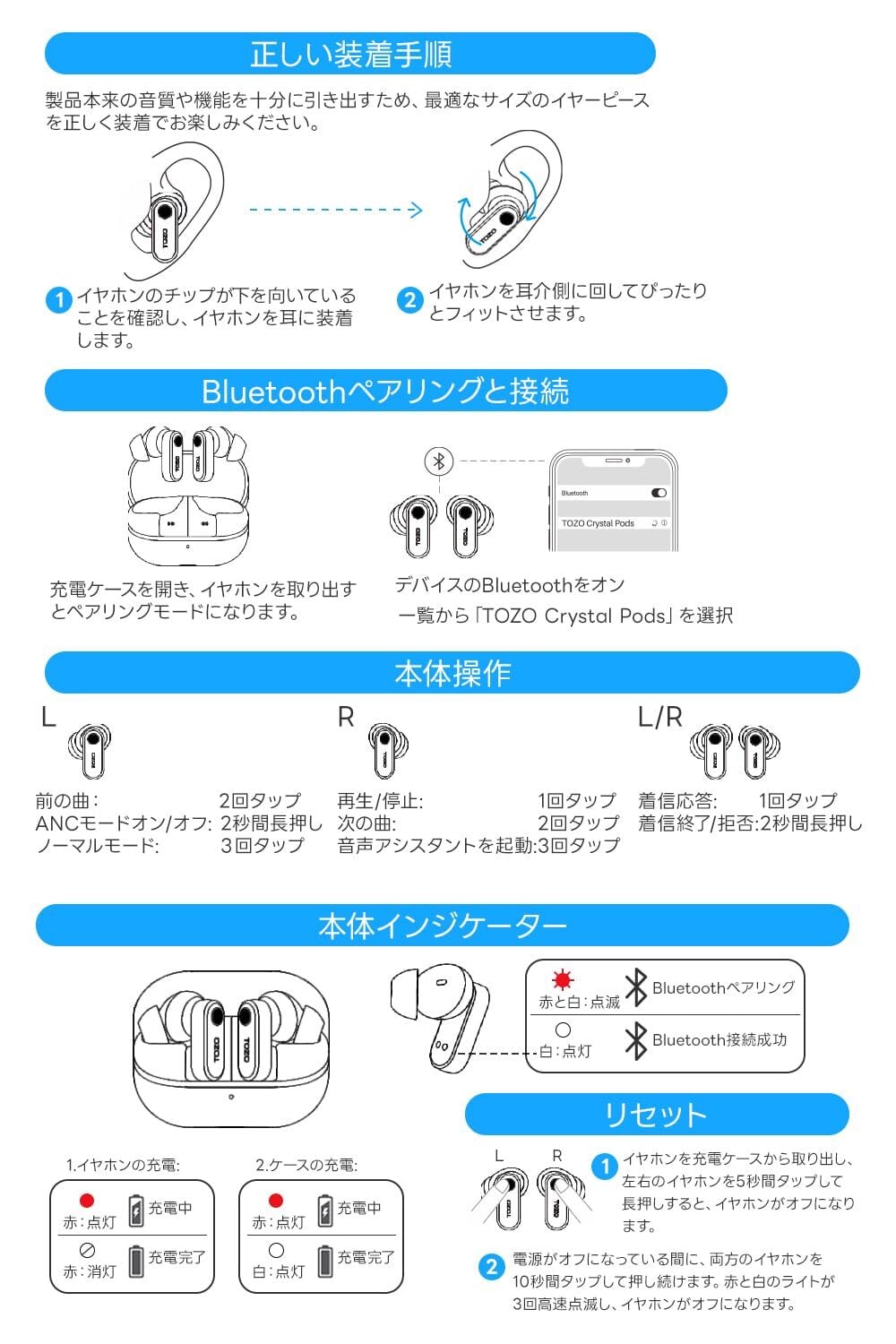TOZO Crystal Pods ワイヤレスイヤホン 2025 極上の音体験 透明感丸みデザイン ANC/ENC搭載 ノイズキャンセリング 外音取り込みモード 専用アプリ対応 EQカスタマイズ タッチ制御 IPX4防水規格 Bluetooth 5.4 最大35時間再生 急速充電 接続瞬時 自動ペアリング iOS/Android対応 快適な装着感(ブラック)