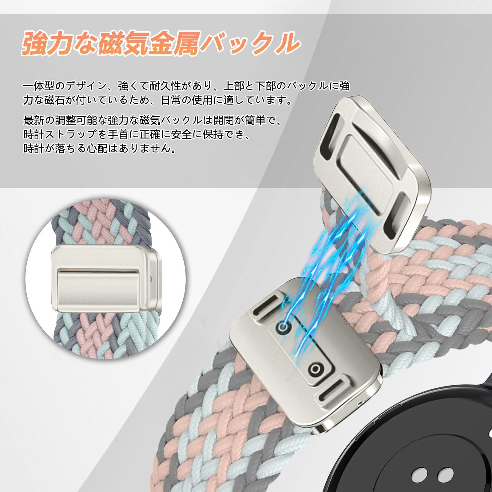 [KeeFos] 22mm バンド CMF by Nothing Watch Pro 2 対応 交換バンド ナイロン素材 磁気バックル マグネット式バックル 替えベルト 互換性 伸縮性 サイズ調節 編みブレスレット 通気性 柔らしい スポーツ 編組リスト CMF by Nothing Watch Pro 2 対応 交換用 ベルト (ブルーピンク)