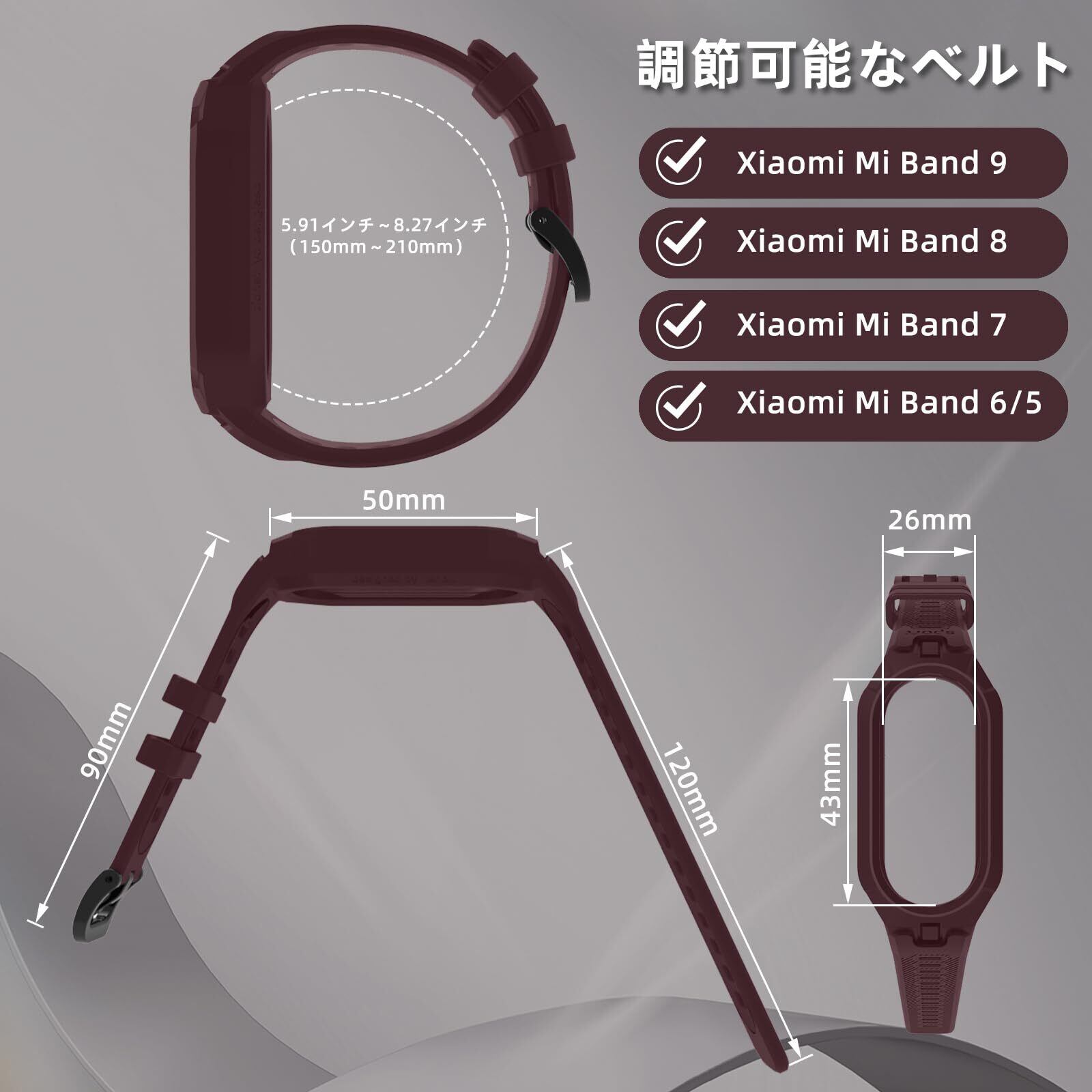 [対応機種] 一体型シリコン交換バンドはXiaomi Smart Band 10/Xiaomi Smart Band 9/Xiaomi Smart Band 8/Xiaomi Smart Band 7/Xiaomi Smart Band 6/Xiaomi Smart Band 5。(ご購入前に時計のモデルをご確認ください。スマートウォッチは含まれません。)注意:バンドがやや硬く、装着には力が必要です。もし取り付けられない場合は無理をしないでくださいませ。