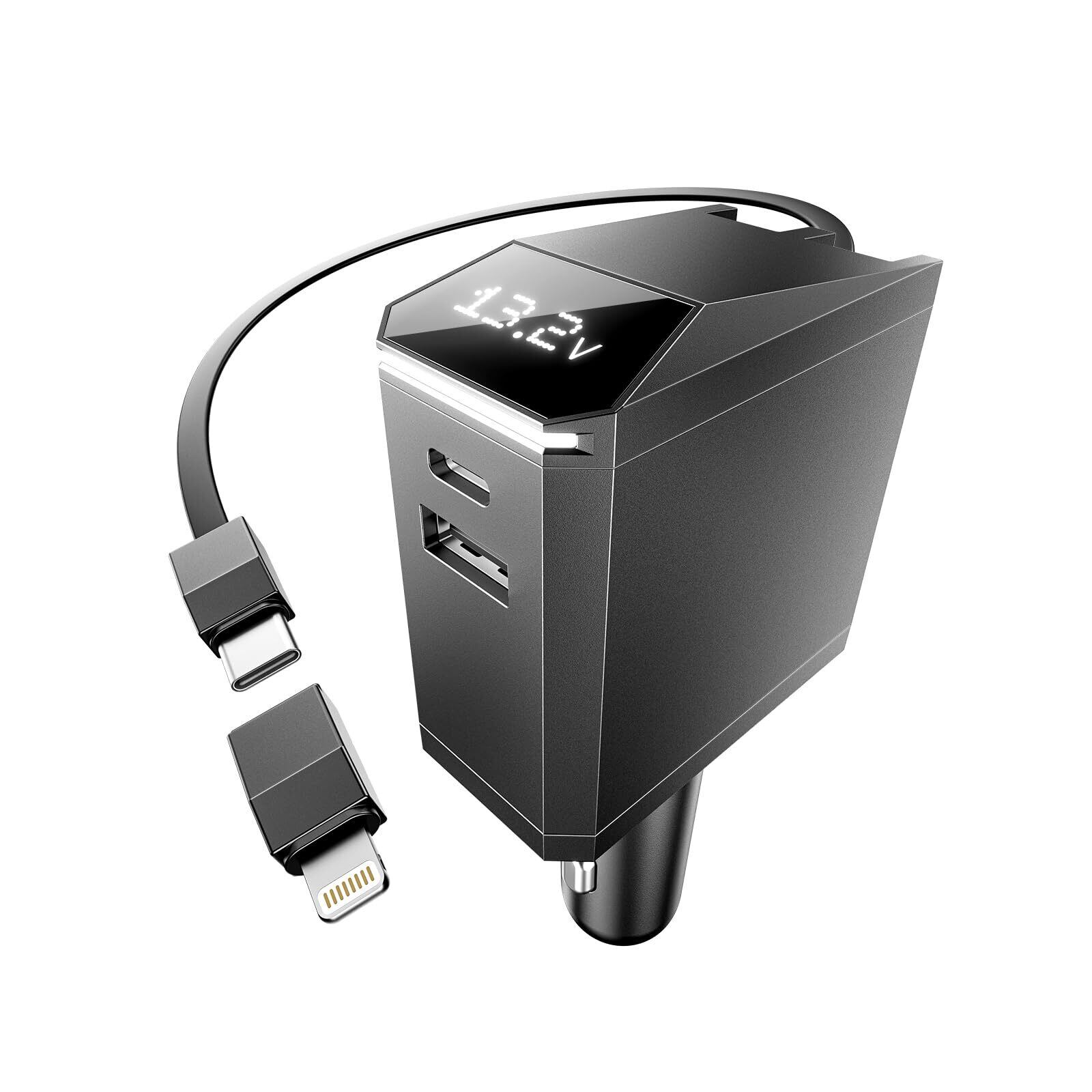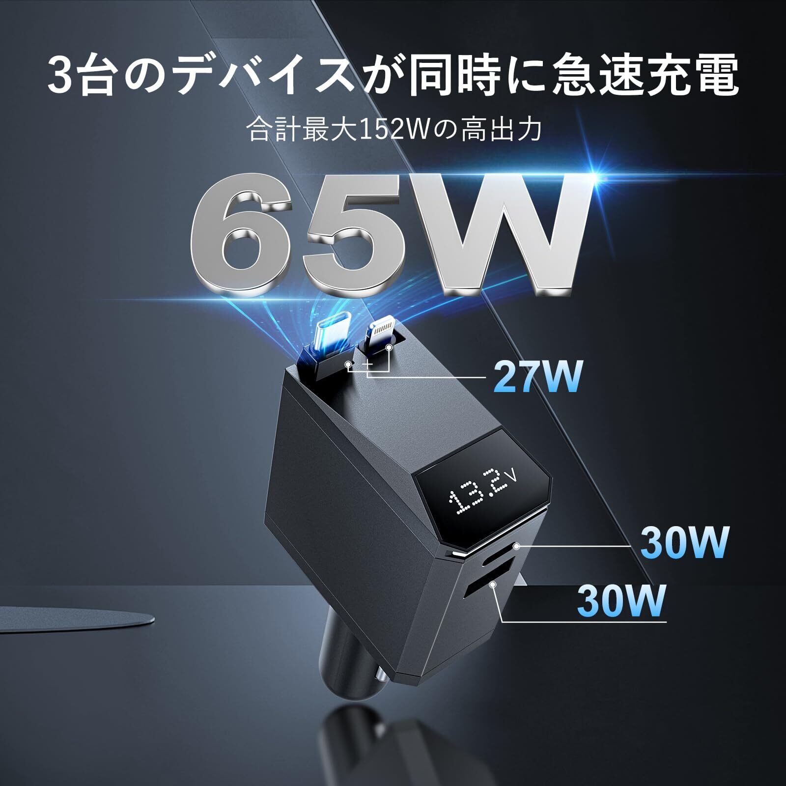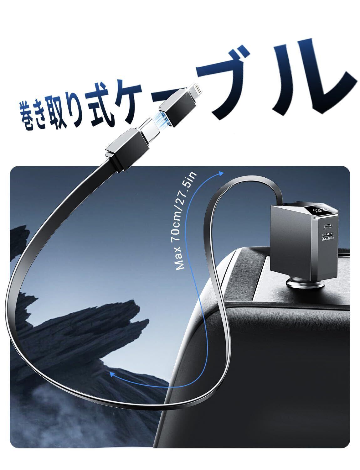 巻き取り式充電ケーブル 車 充電器 シガーソケット 充電器 153W(66W巻取り式 USB-Cケーブル)iPhone Galaxy Android スマートフォン ノートPC iPad 各種 その他機器対応