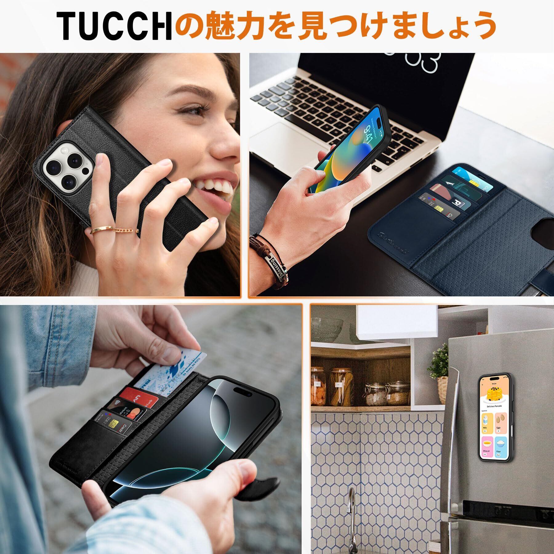 TUCCH iPhone 16 Pro 対応 ケース 手帳型 2 in 1 分離式 アイフォーン16 プロカバー 取り外し可能 [RFIDブロッキング] カードポケット付き 横置きスタンド機能 衝撃吸収 全面保護 PU合皮 アイフォン16プロ携帯ケース 2024年発売 6.3インチ あいふぉん16 プロ対応 (2 in 1 分離可) テクスチャー ブラック