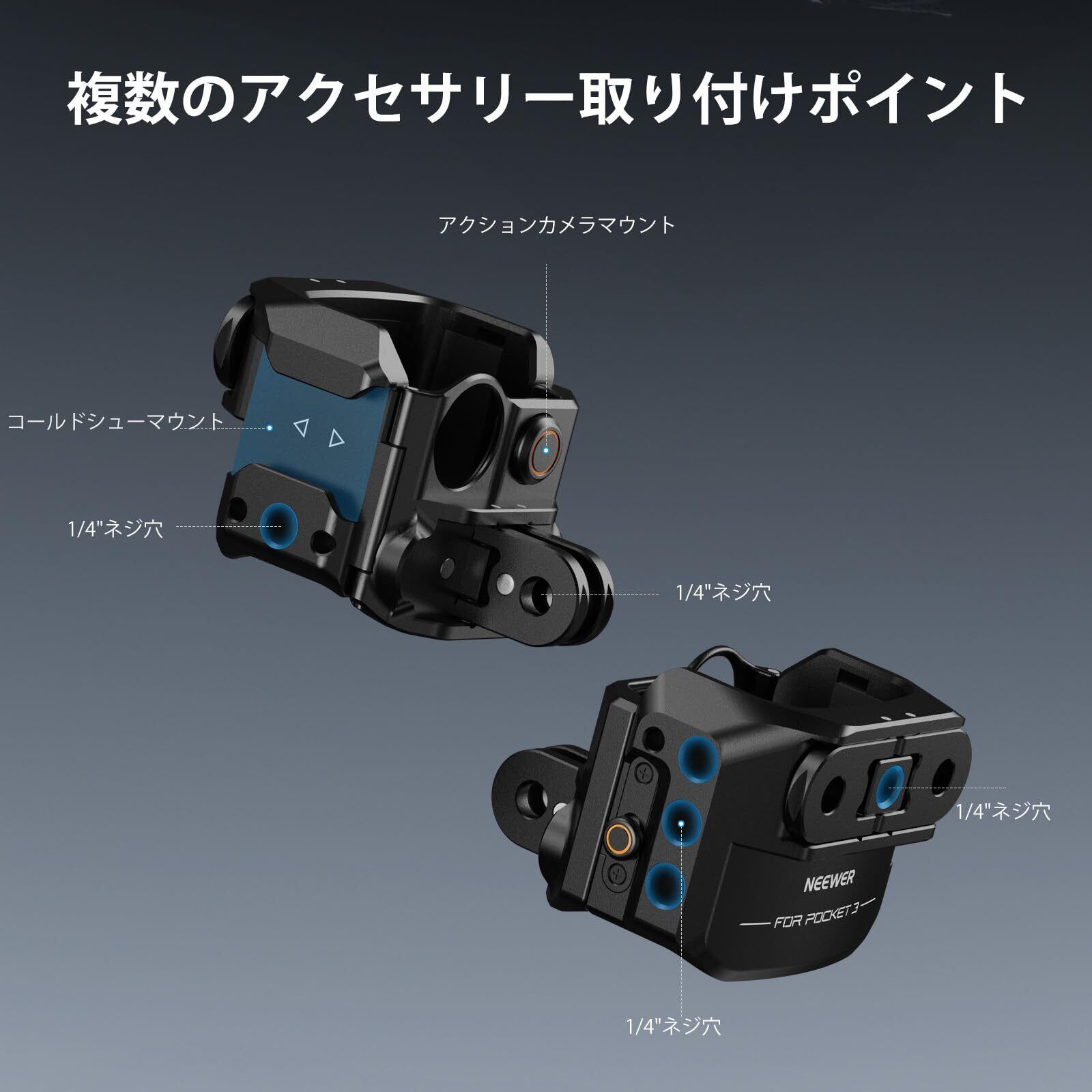 NEEWER アクションカメラケージ Pocket 3用 アルミ製 ジンバルカメラビデオリグ ビデオケージ 保護ケース 1/4"ネジ/アクションカメラアダプター付き コンパチブル Osmo Pocket 3 Creator Combo 組立不要 AC009