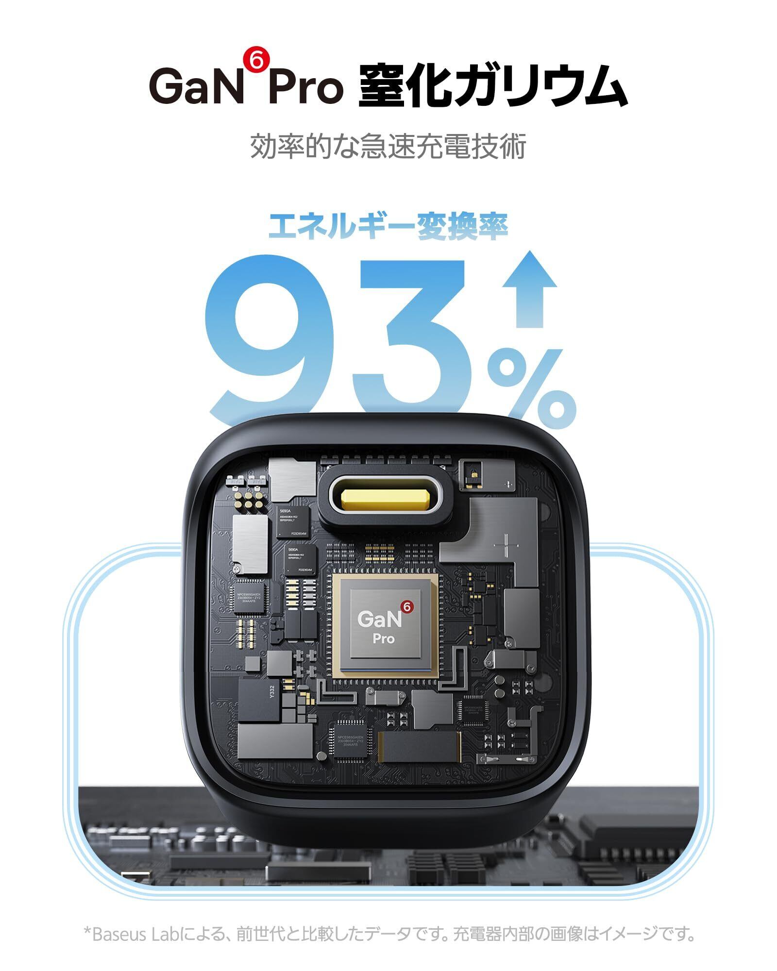 【GaN6Pro技術で安全安心】最新のGaN6Pro窒化ガリウムを採用、充電効率を向上させる同時に、安定性もされます。PSE認証済み、TÜV Rheinlandの品質と安全性の認証も受けたこの充電器は、厳しい基準を満たしています。過熱、過充電、ショートなどの問題からデバイスを保護し、信頼性の高い安心の急速充電体験を実現します。