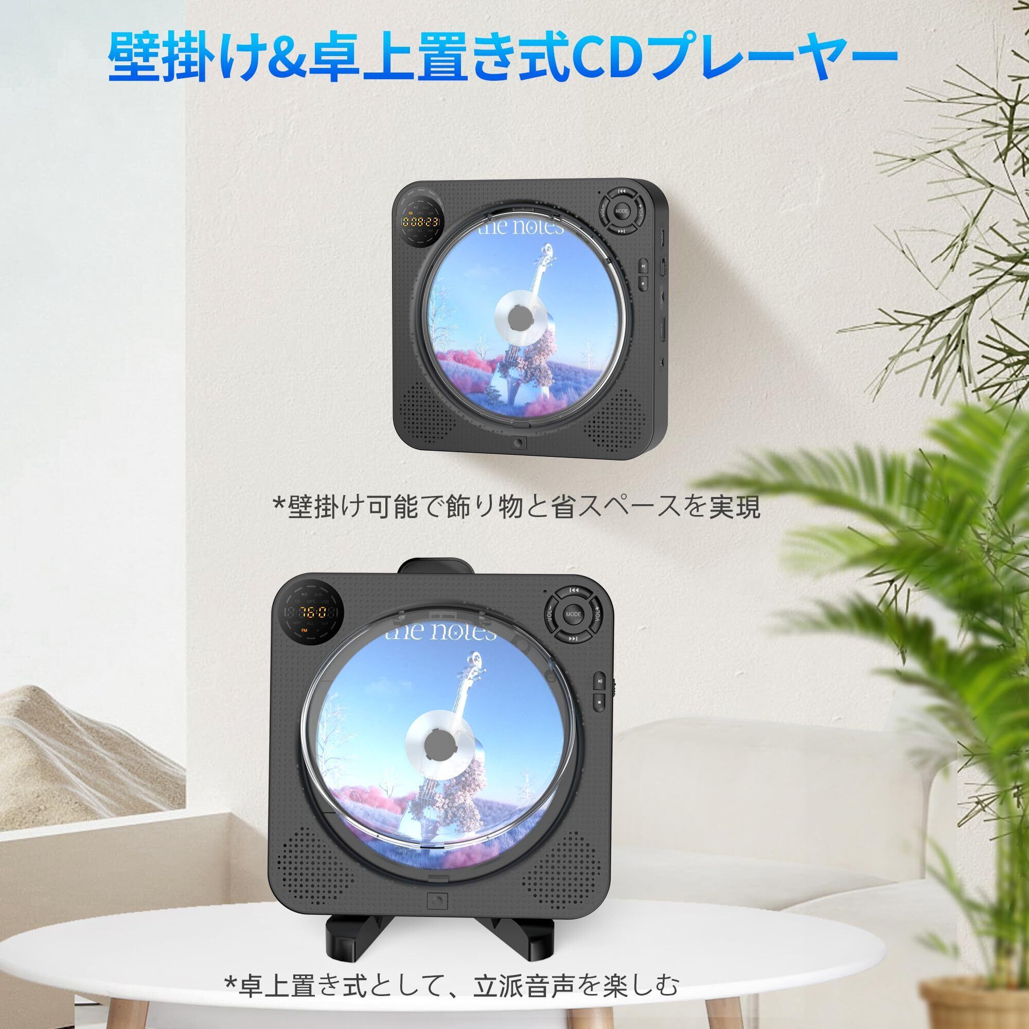 CDプレーヤーBluetooth受信/送信 スピーカー内蔵ポータブルCDプレーヤー壁掛け&卓上置き式 多機能 FMラジオ/AUX/USB再生対応 A-Bリピート再生・ +10スキップ機能 ・ 5EQエフェクト 音楽鑑賞/語学学習/胎児教育 日本語説明書付き