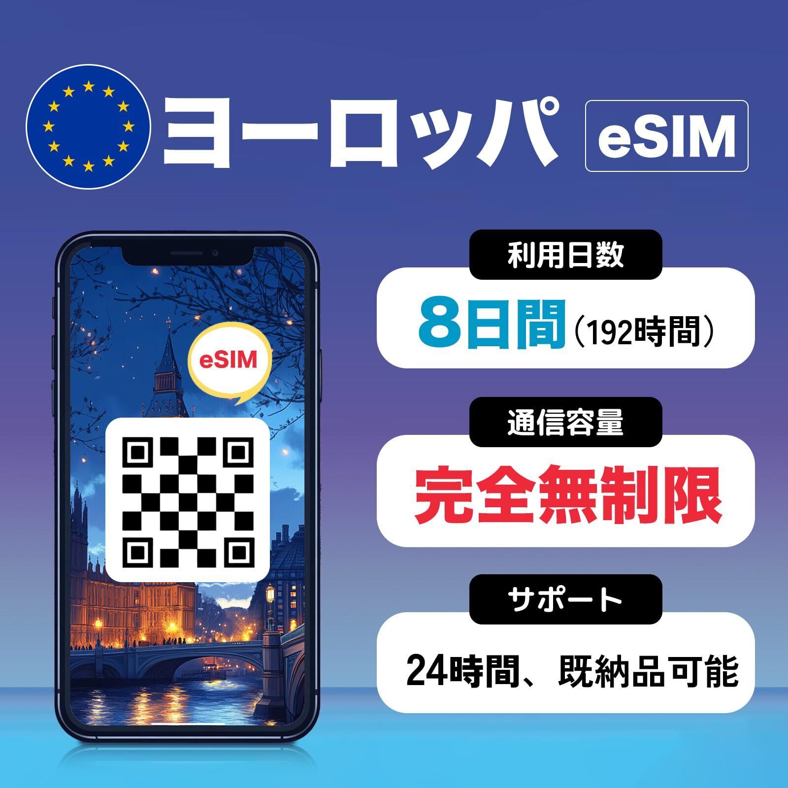 【Almond eSIM】ヨーロッパ 40カ国 esim 8日間 高速データ通信 完全無制限 当日発行可能 24時間サポート 4G-LTE対応 プリペイド EU ESIMプラン (8日間完全無制限)