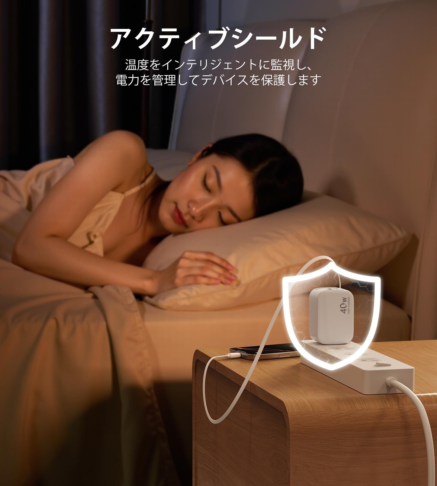 【40W急速充電 】5W充電器よりも最大3倍速く、高速で効率的な充電を提供します。わずか30分でiPhone 16を最大50%の容量まで充電します。毎日最低1時間以上の充電時間を節約できます。いつでもバッテリー満タン、充実の電力を実現します。