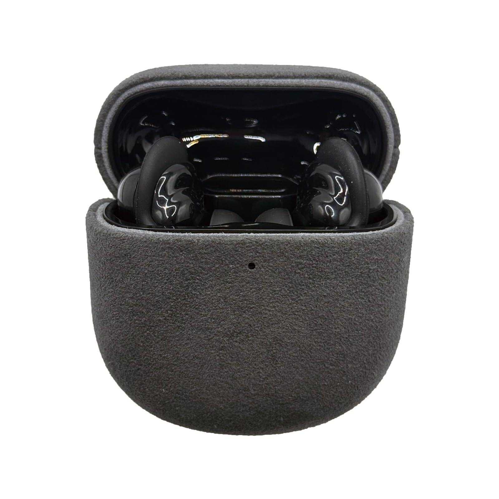 Bose QuietComfort Ultra(2023)/ Bose QuietComfort Earbuds II(2022) 用 Italian Alcantaraレザー保護ケース、CONTEME 高級レザーハンド Bose QC 対応、滑り止め、耐衝撃、ブラック (ライトグレー)