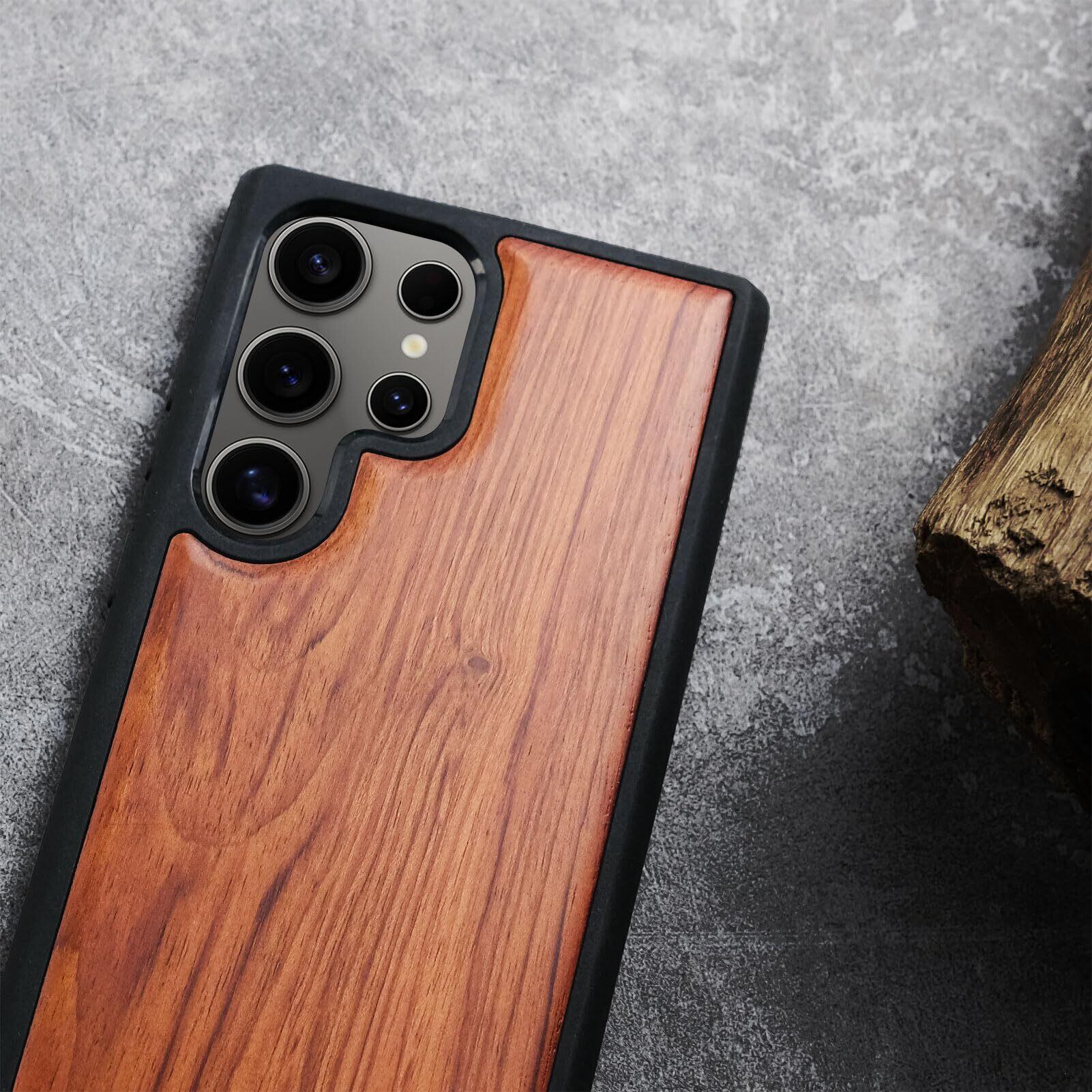 Carveit Galaxy S25 Ultra ケース木製 [ブラック ソフト TPU+天然木] 落下防止 耐衝撃 ギャラクシー S25 Ultra ケース ワイアレス充電対応 Galaxy S25 Ultra カバー (バラ色-白木スタイル)