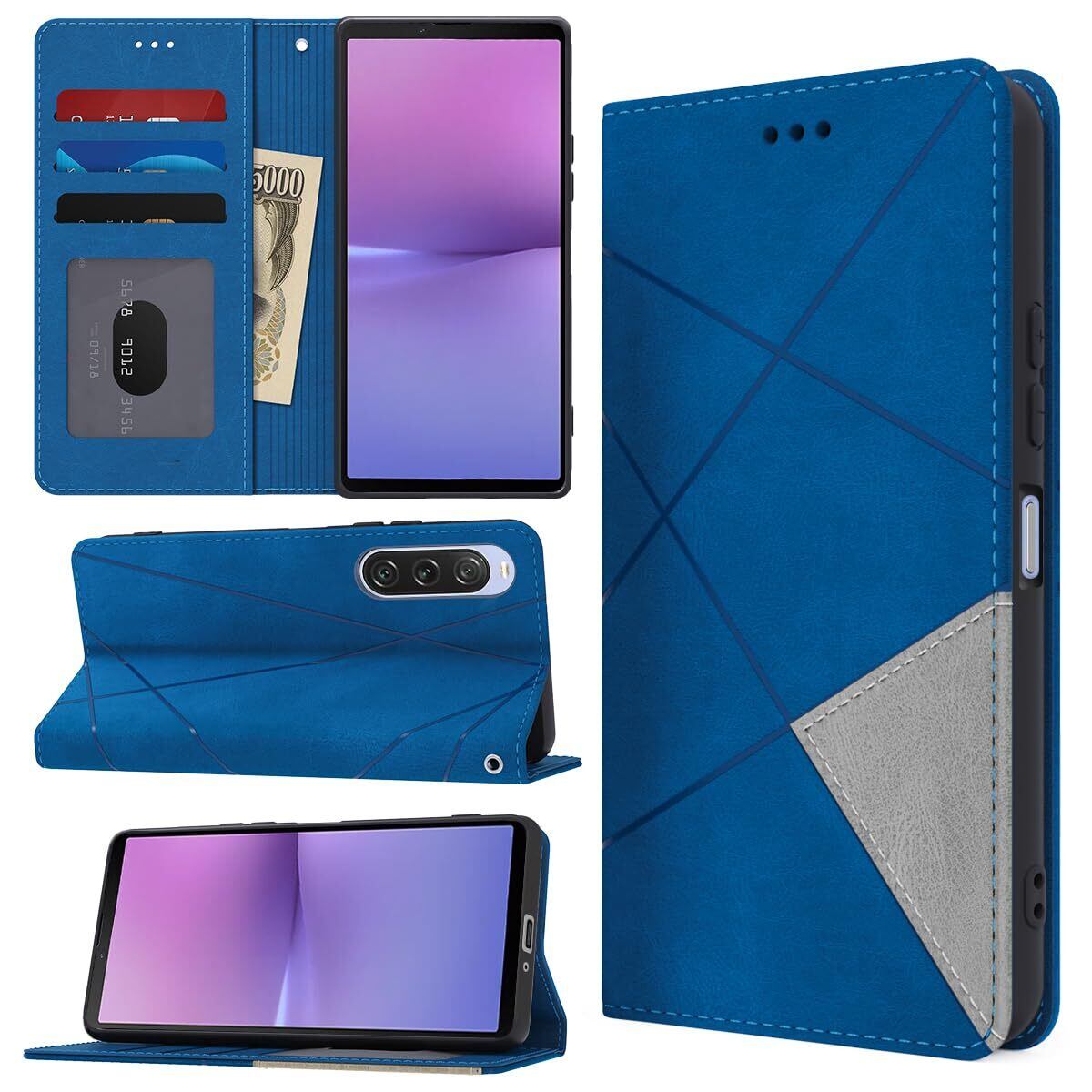 Sony Xperia 10 V ケース 手帳型 財布型 耐衝撃 エクスペリア 10V スマホケース カード収納 横置き機能 SO-52D SOG11 携帯カバー 横置きスタンド機能付 ラップホール付き マグネット内蔵 擦り傷防止 肌感レザー 防水 耐摩擦 ファッション (ブルー)