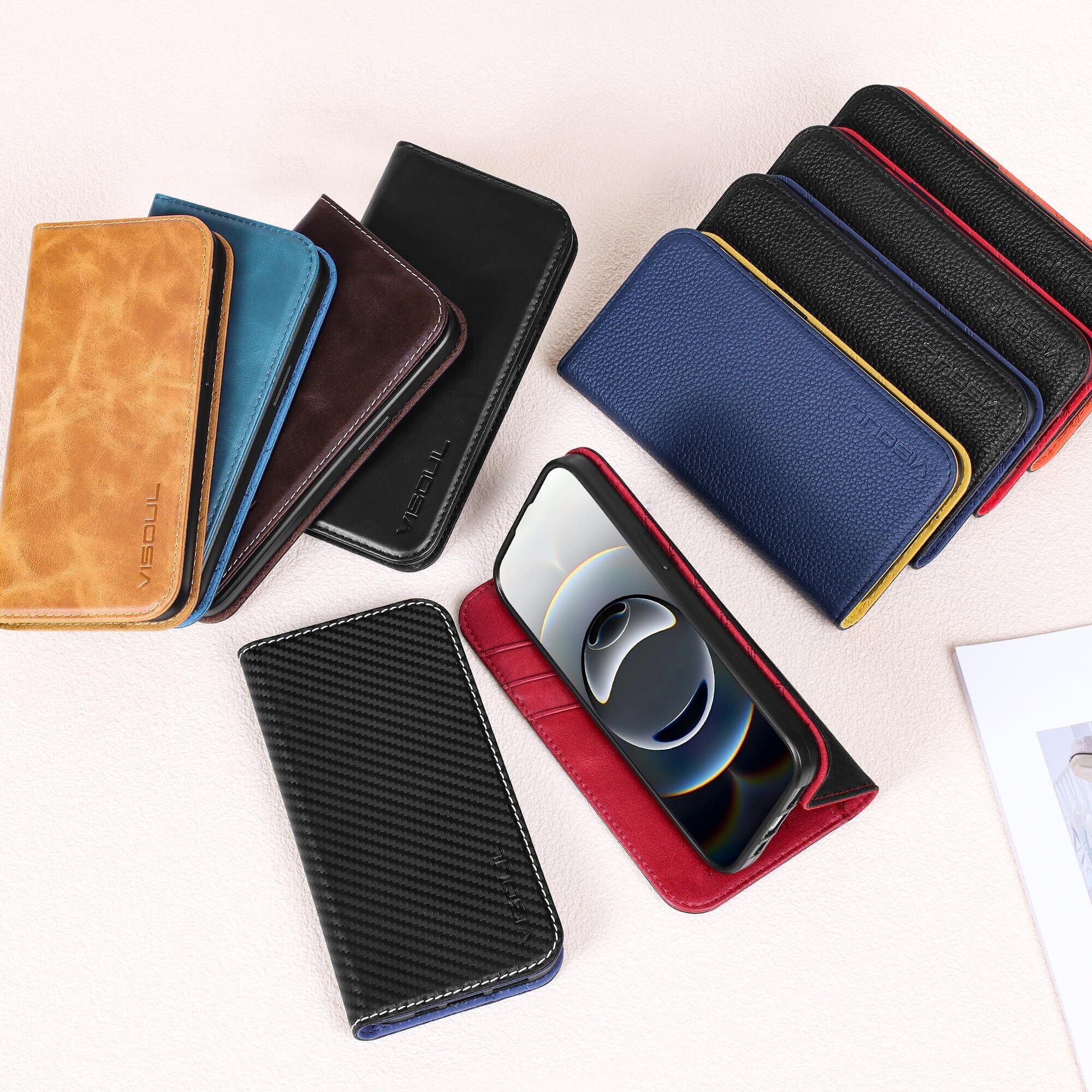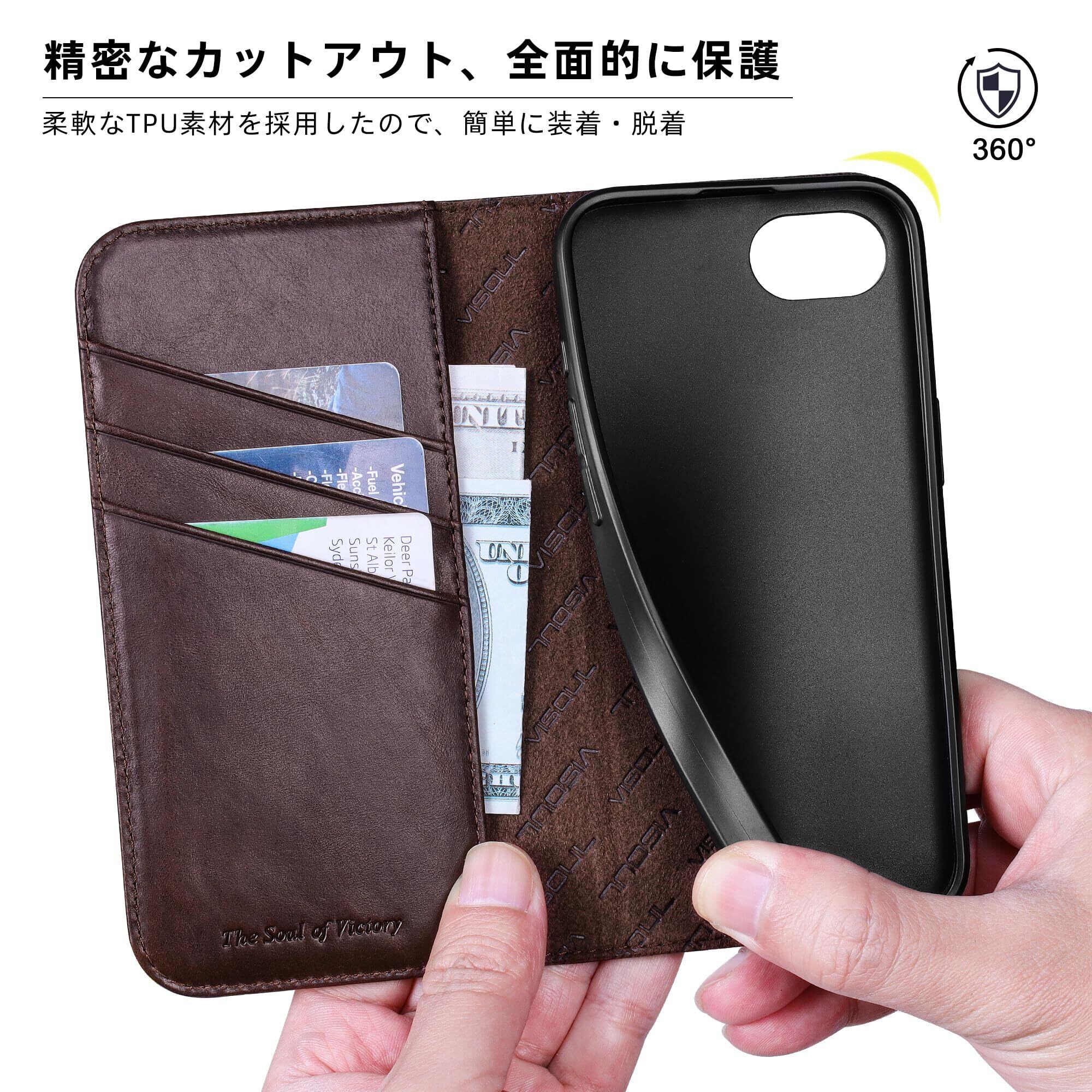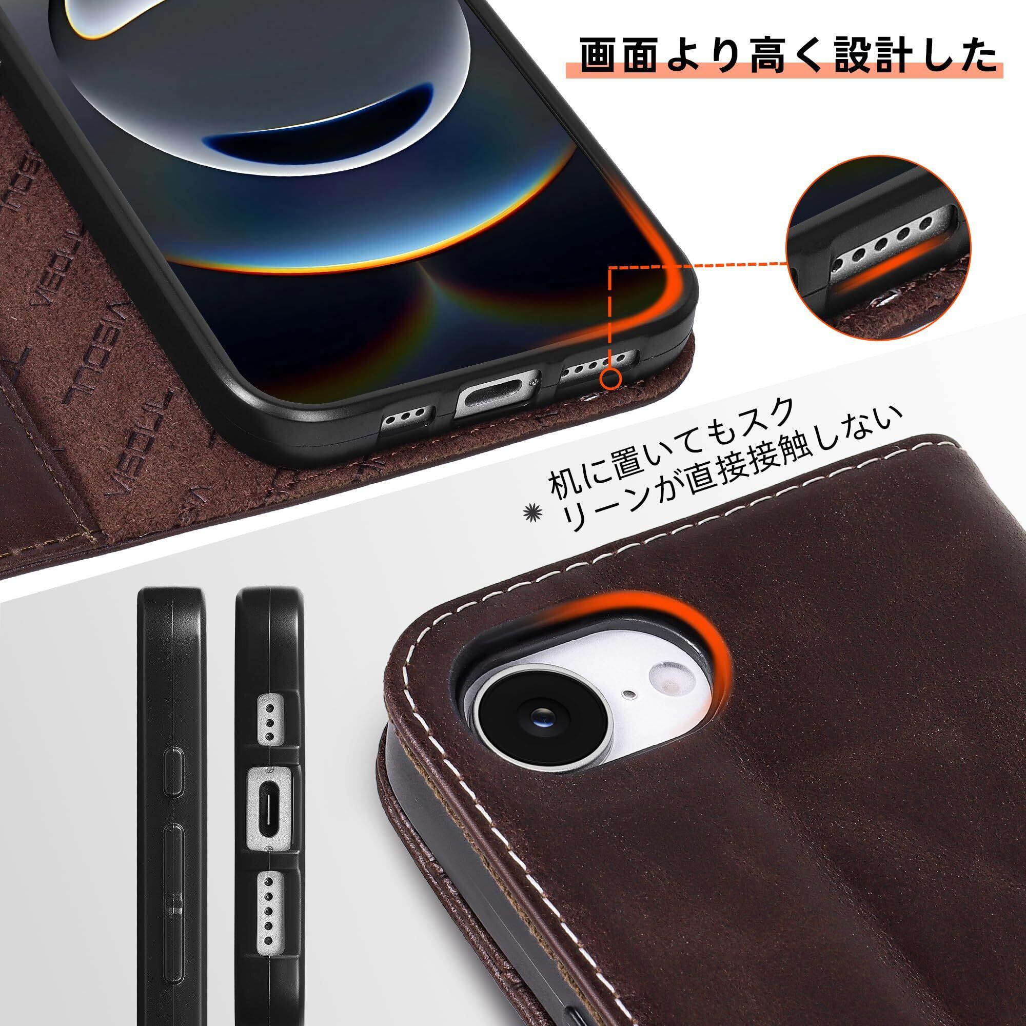 VISOUL iPhone16e 対応ケース 手帳型 本革 アイフォン16e 手帳型ケース レザー カード収納 携帯ケース 全面保護 マグネット 横置きスタンド機能付き手帳型ケース 柔軟なTPU素材 アイホン16e (チョコレート)