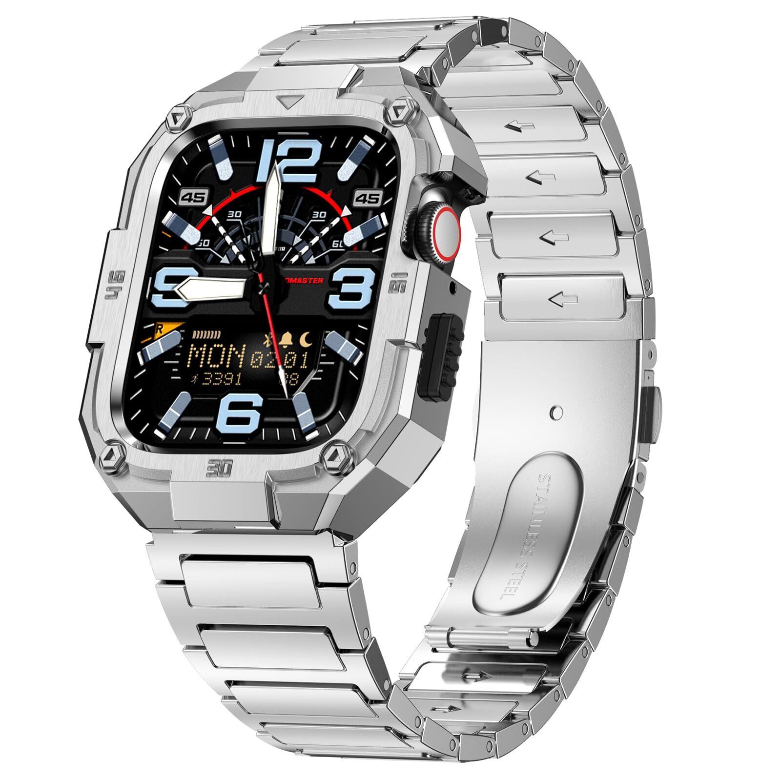 【アップルウォッチステンレス一体型デザイン】保護ケースとバンドが完全一体化した革新的構造。シームレスな曲面加工により装着時の違和感を排除し、ビジネスシーンでも映える上質なメタルフィニッシュを実現。ギフトボックス仕様でプレゼントにも最適です。