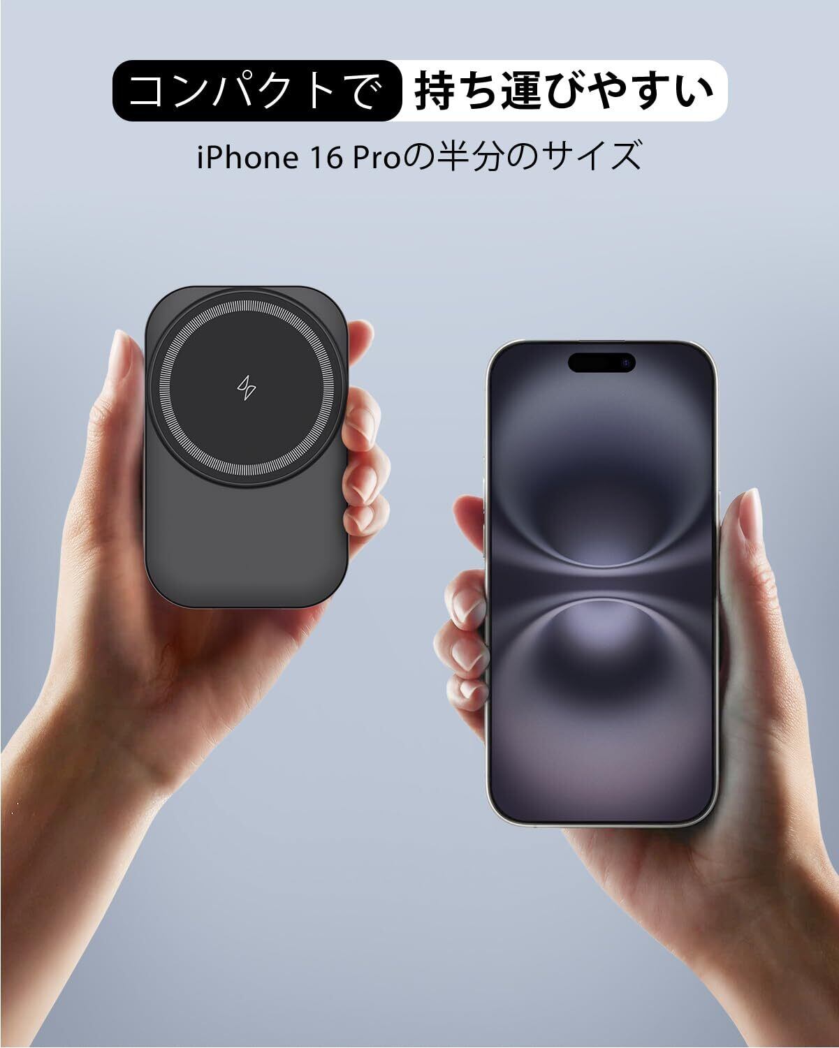 【3in1&折り畳み式】このmagsafe充電器はiPhone、Apple Watch、AirPodsを同時に充電可能!外出先でも充電器1つあればOK、コードの煩わしさから解放されます。複数の充電ケーブルを持ち運ぶ手間が省け、よりすっきり便利です。超軽量・コンパクトmagsafe充電器、折り畳みサイズ約60*23*95mm、重さ:約184g。折りたたむと携帯電話の半分の大きさになります。 旅行、出張に最適。スリムな折りたたみデザインでバッグやポケットに収納可能。開閉部は5,000回の耐久テストをクリアした頑丈なヒンジ採用で、長期間安心してご利用いただけます。