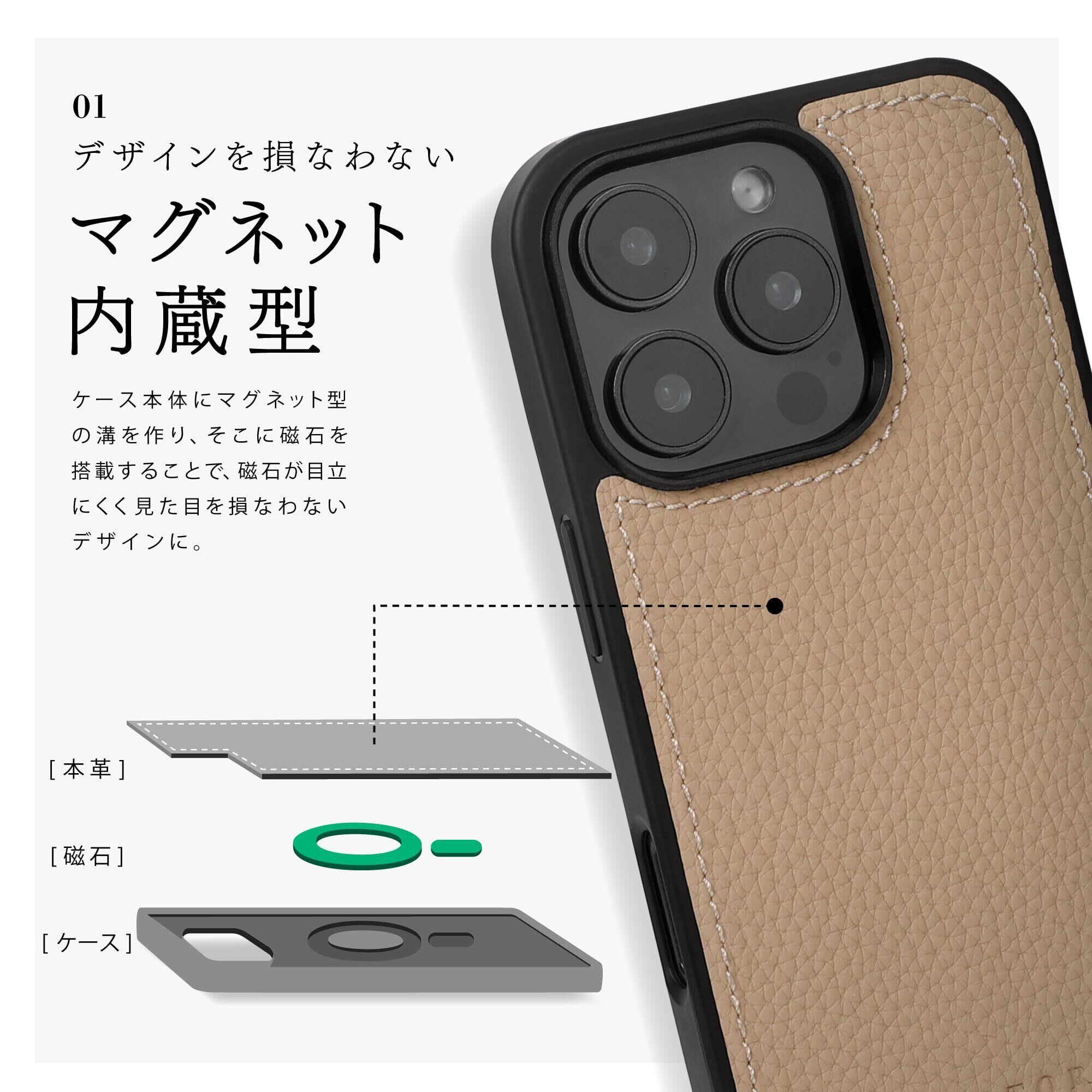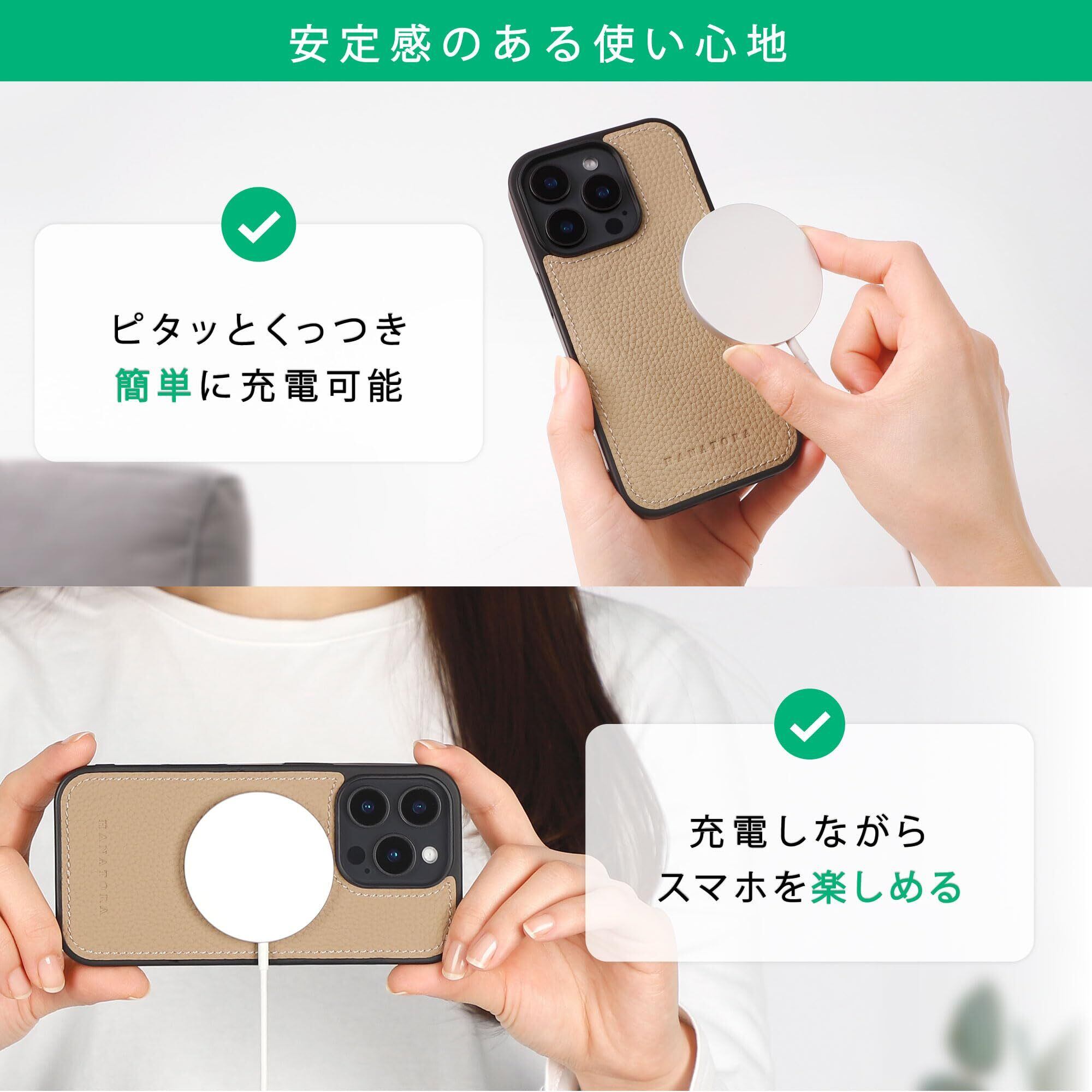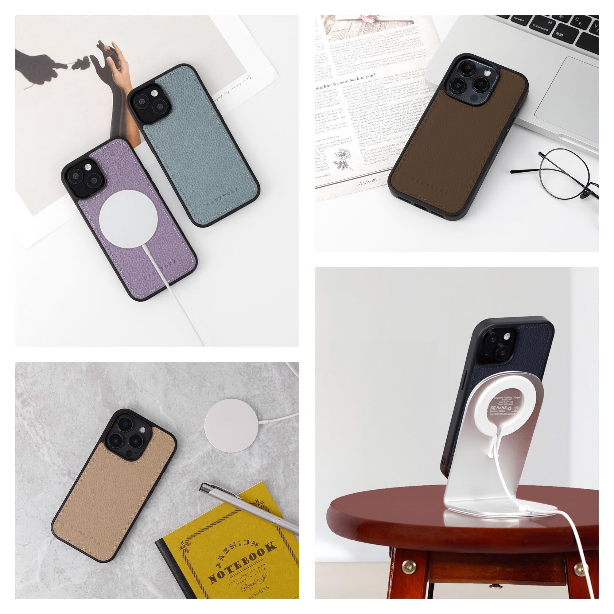 「シンプルで美しい」を追求したMagSafe対応本革製スマホケースです。素材に使用しているシュリンクカーフレザーは上品で艶のある風合いが魅力です。本革では珍しい個性派色、ベーシックな定番色。お好みやお使いのシーンに合わせてお選びくださいませ。