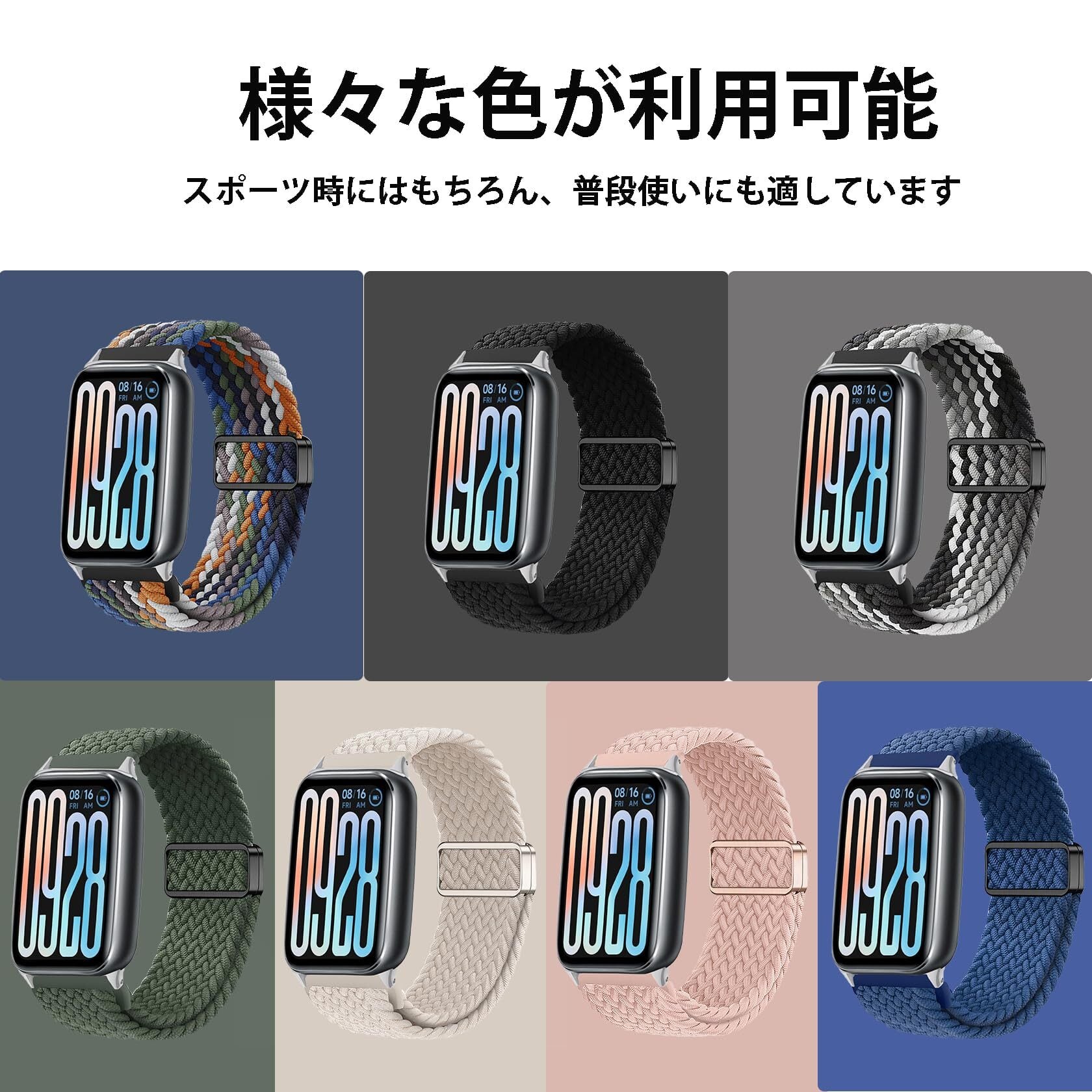 【強力な磁気金属バックル】編組ストラップは、アップグレードされた調整可能な磁気金属クラスプデザインを採用しており、手首のサイズに応じて自由に調整できます。最適な腕部サイズを提供し、サイズを間違えて買う心配がない。135〜235㎜(5.3 ''- 9.3'')の手首周りにあっています。注意:手動測定のために、1~2mmの誤差がある場合があります