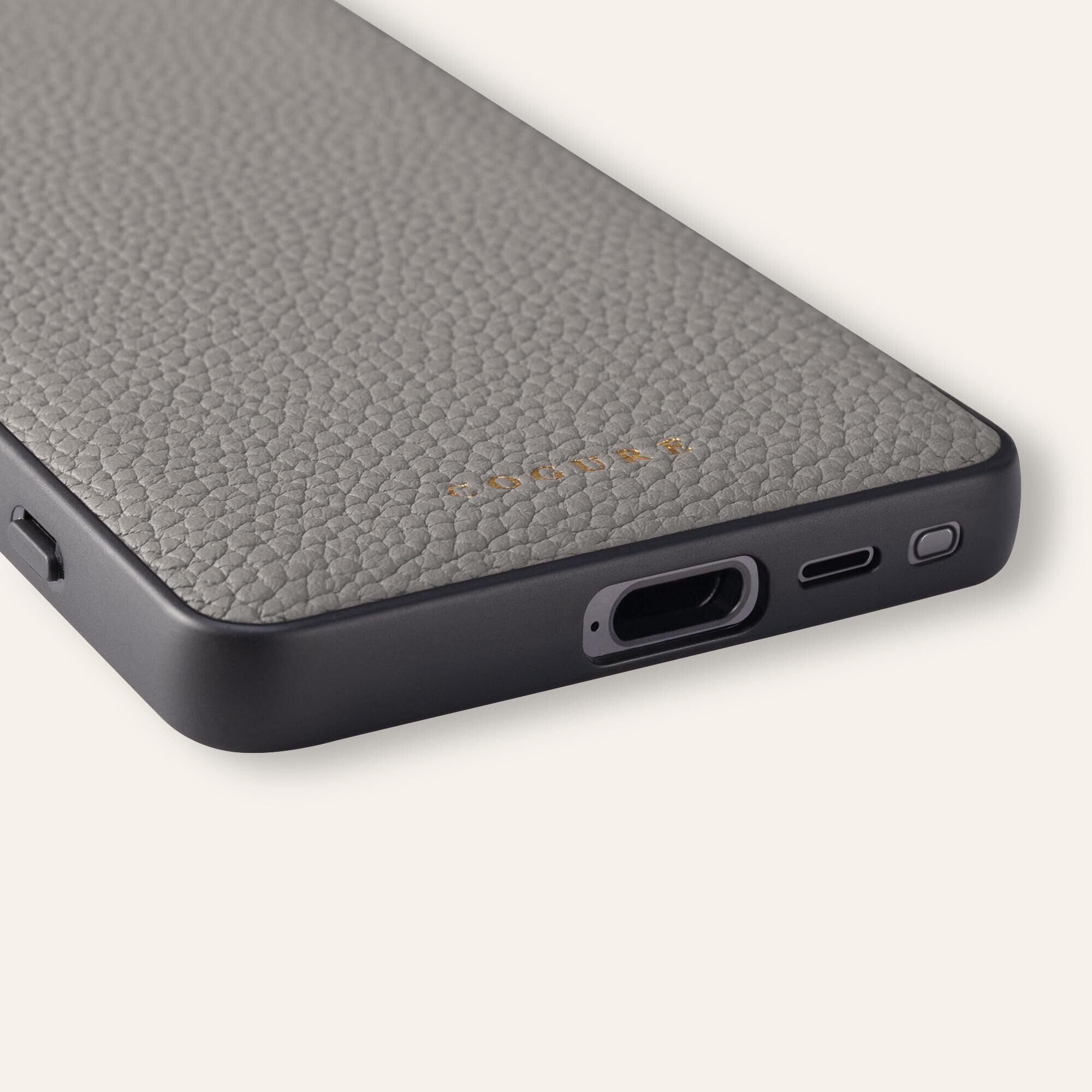 ヨーロッパの高級ブランドがこぞって採用する「シュリンクカーフレザー」を贅沢に使用した、シンプルで上品なスマホケースです。使い込むほどに味わいが増し、色落ちや色褪せがほとんどなく、やわらかい雰囲気の自然な表情を長くお楽しみいただけます。