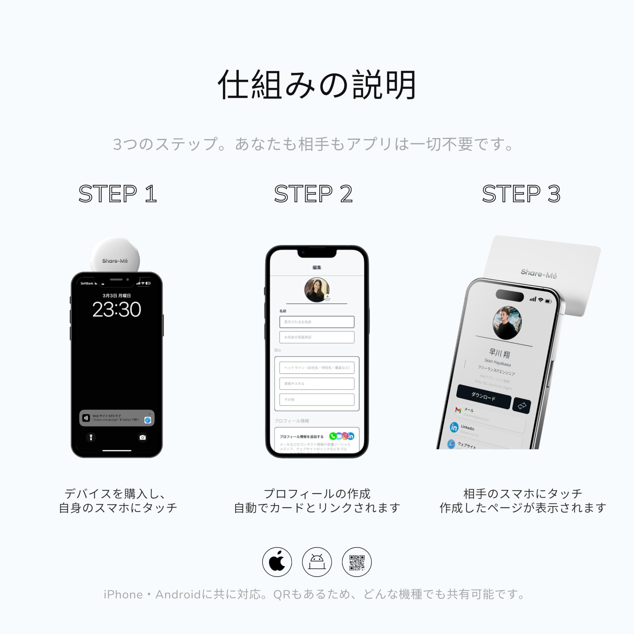 - タッチで瞬時にデジタル名刺やSNSを共有 - スマートスティッカー|ShareTap (シェアタップ) ホワイト