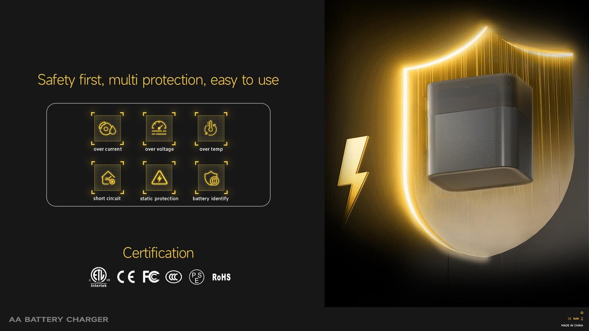 安全に使用:一体化保護構造(過充電/過放電/過熱/短絡防止),先進的な耐震設計,-20℃~55℃の広域温度対応.自動診断機能&デジタル電圧制御IC搭載(1.5V±0.1V安定維持),従来電池の電圧降下問題を解消,終始一定パワーで精密機器を保護することが安心利用できます.