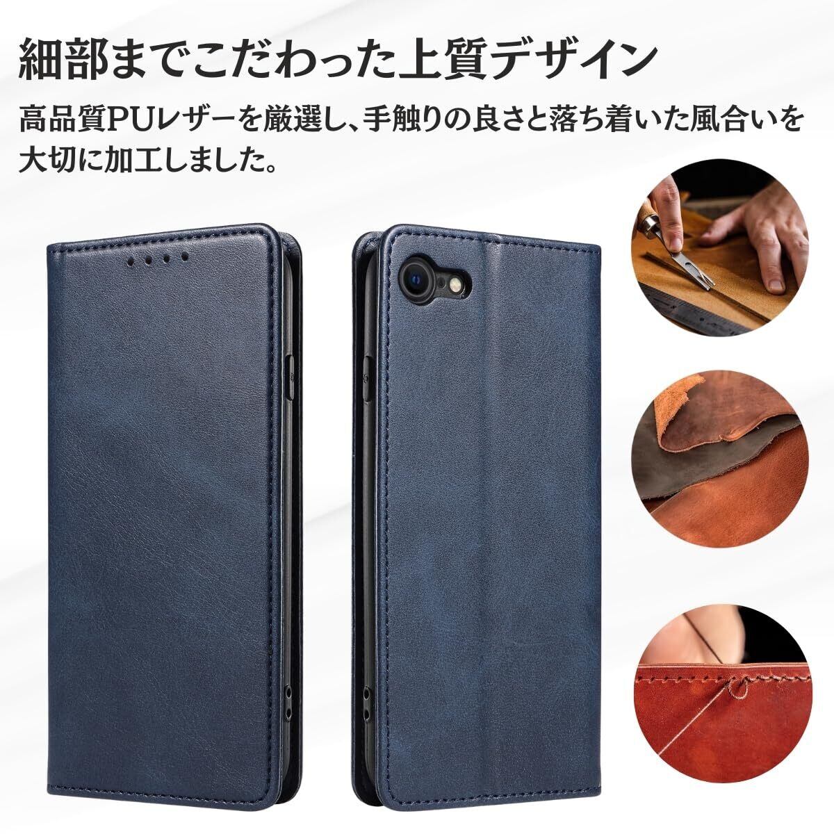 【GlowTact】iPhoneSE2 SE3 8 7 用 ケース 第2世代 第3世代 用ケース 手帳型 カード収納 いphoneSE第2世代手帳型ケース iPhone SE第3世代 カバー 手帳型 PUレザー 財布型 耐衝撃 ケース マグネット スタンド機能付き いphoneSEケース 手帳型 スタンド機能 携帯カバー (ブルー, SE3/SE2/8/7)