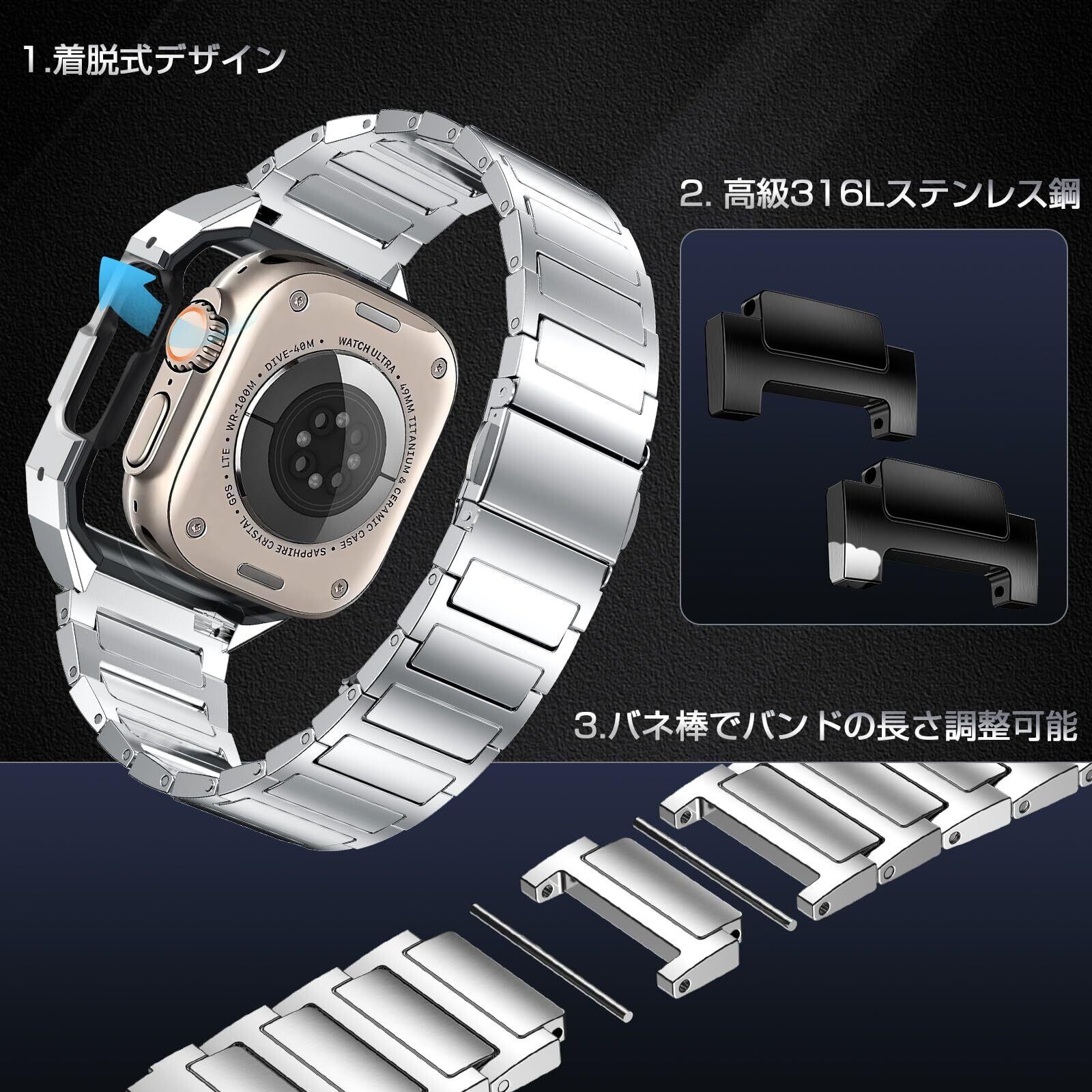 [CAGOS] for Apple Watch Ultra バンド 保護ケースベルト一体型アップルウォッチ 交換ベルトApple Watch Ultra1/2 49mm に対応 316ステンレス製 TPUケース内臓 二重保護 ビジネスバンド 耐久性 耐衝撃 おしゃれ 着脱簡単 長さ調節器具付き (シルバー, iWatch ultra/ultra 2 49mm)