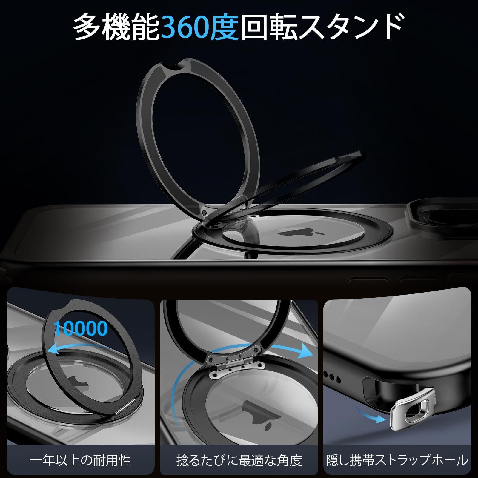 LUTSIDUTA iPhone13 用 ケース ダブルリング付き ショルダー ストラップ付き 多機能360度回転スタンド MagSafe対応 ワイヤレス充電対応 耐衝撃 薄型 透明 PC + 軽量 シリコン TPUバンパー おしゃれ スマホケース (ブラック, iPhone 13)