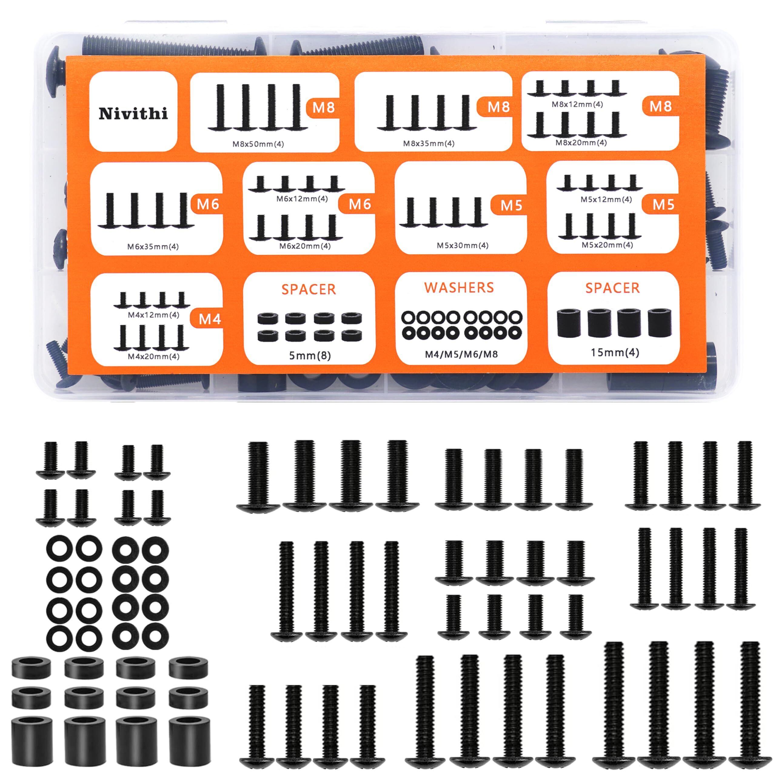 Nivithi テレビ壁掛けネジセット M4/M5/M6/M8対応 モニター取付用ボルトキット スペーサー&ワッシャー付き TV壁掛け金具用76本セット TS12
