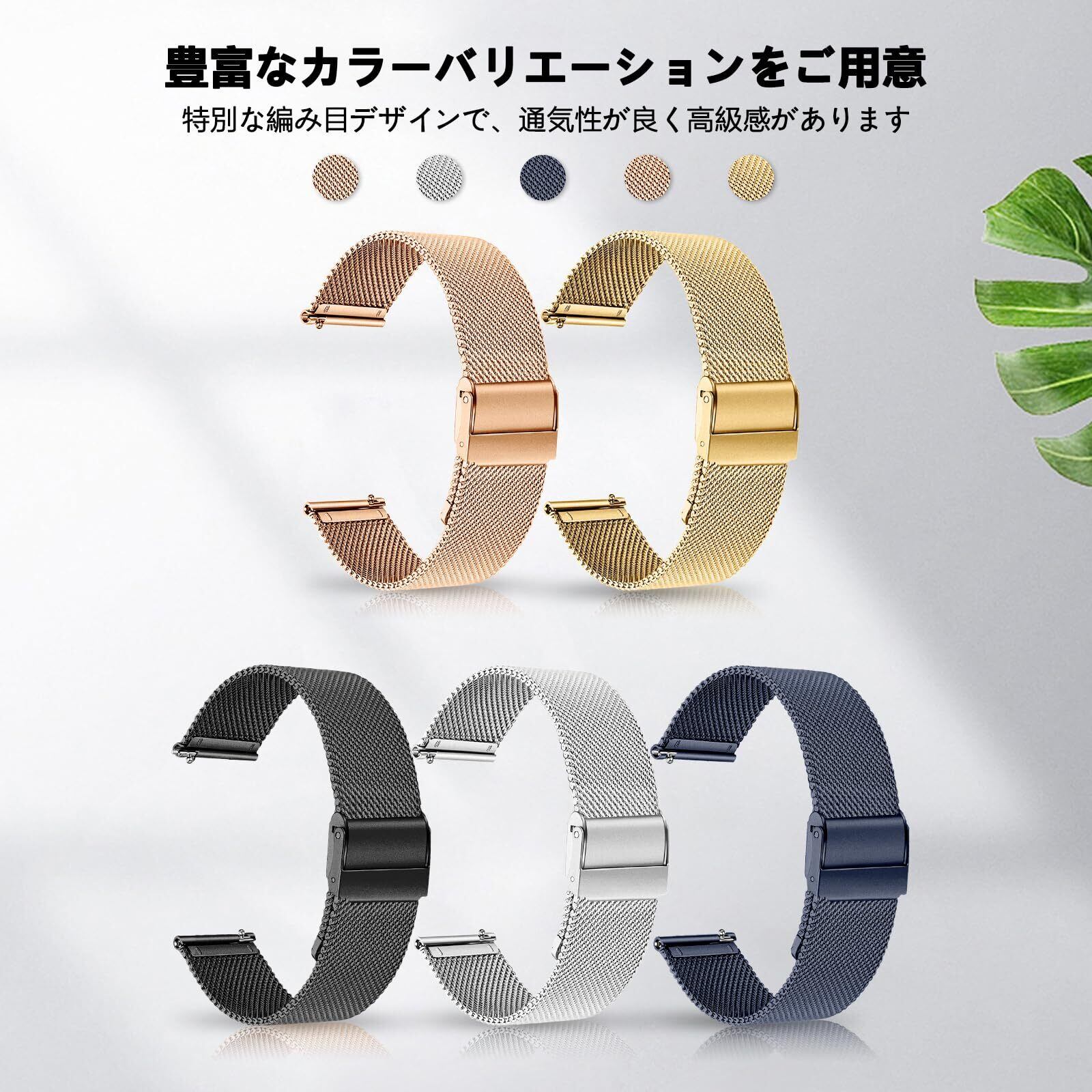 [SinRenn] 時計バンド 20mm 22mm対応 交換バンド ステンレス 金属ウォッチバンド 調整簡単 スマートウォッチ 金属ベルト 20ミリ 22ミリHuawei、Samsung、Amazfit 、Garmin、Xiaomi、Ticwatchなどです ミラネーゼ メッシュ 交換ベルト (ローズゴールド/22mm)