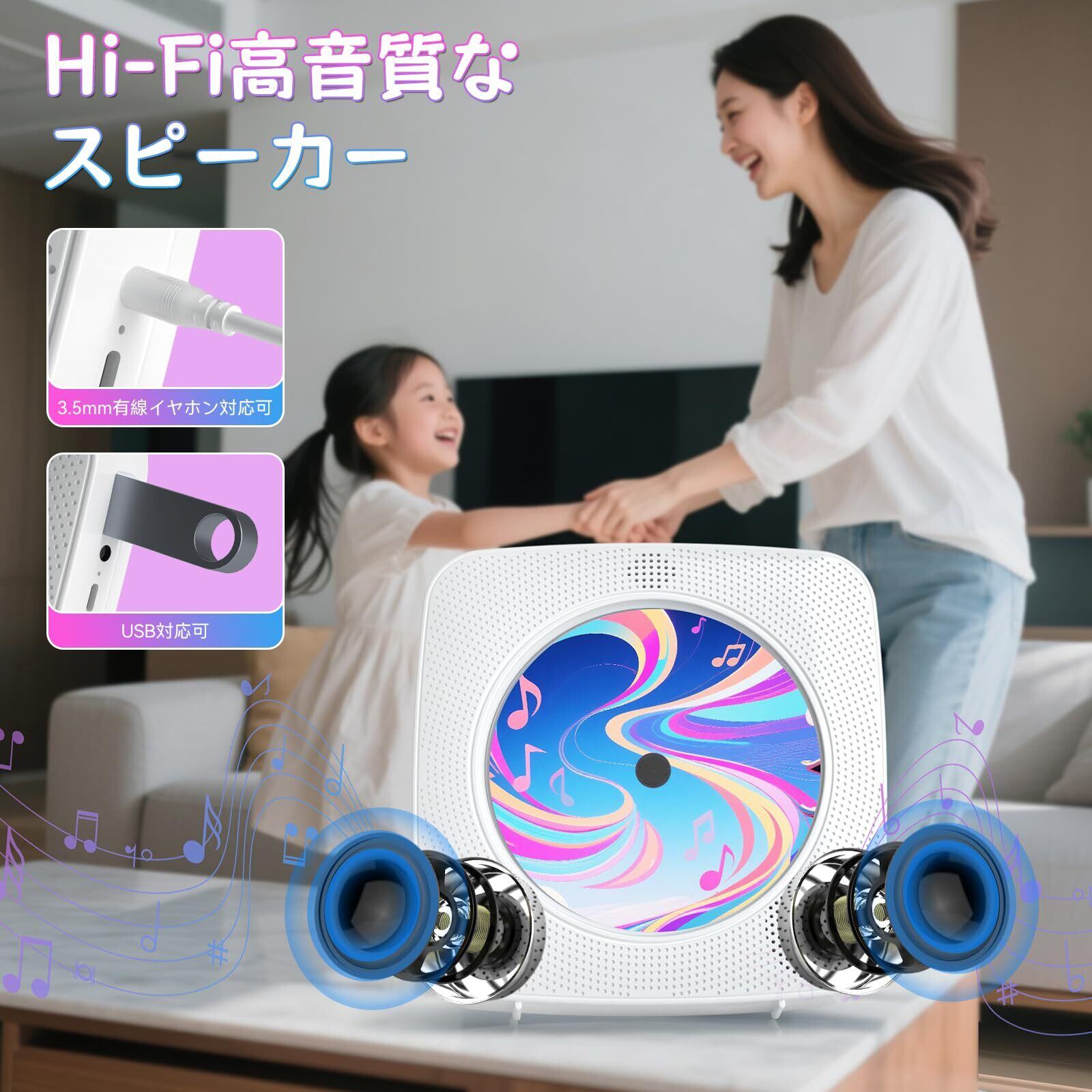 Kegaudio CDプレーヤー cdラジカセ Bluetooth 受信/送信 スピーカー内蔵 卓上&壁掛け式 CDプレイヤー 1台多役 FM/USB対応 A-Bリピート再生 音楽再生/語学学習/胎児教育 日本語説明書付き(ホワイト)