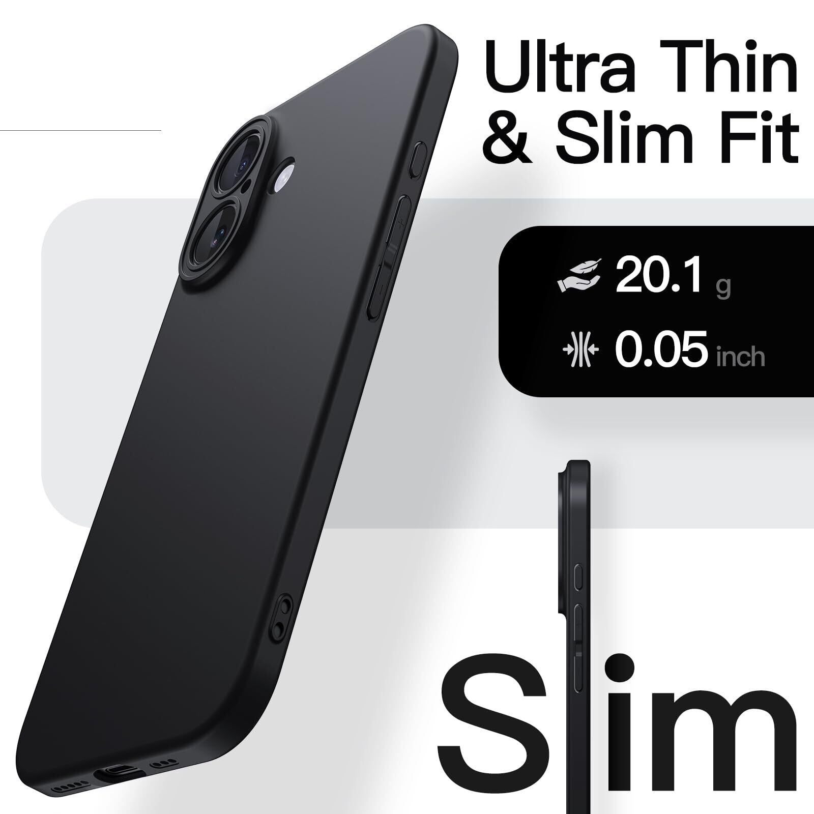 JETech iPhone 16 6.1インチ用 スリムケース カメラレンズ全面保護 薄型 軽量 マット仕上げ ミニマリスト 保護フォンカバー (ブラック)