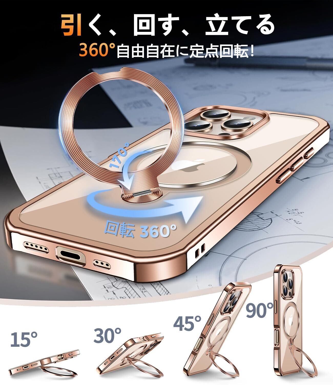 【360°回転CD スタンド・両面完全保護・MagSafe対応】NIANGUO iPhone 用 ケース